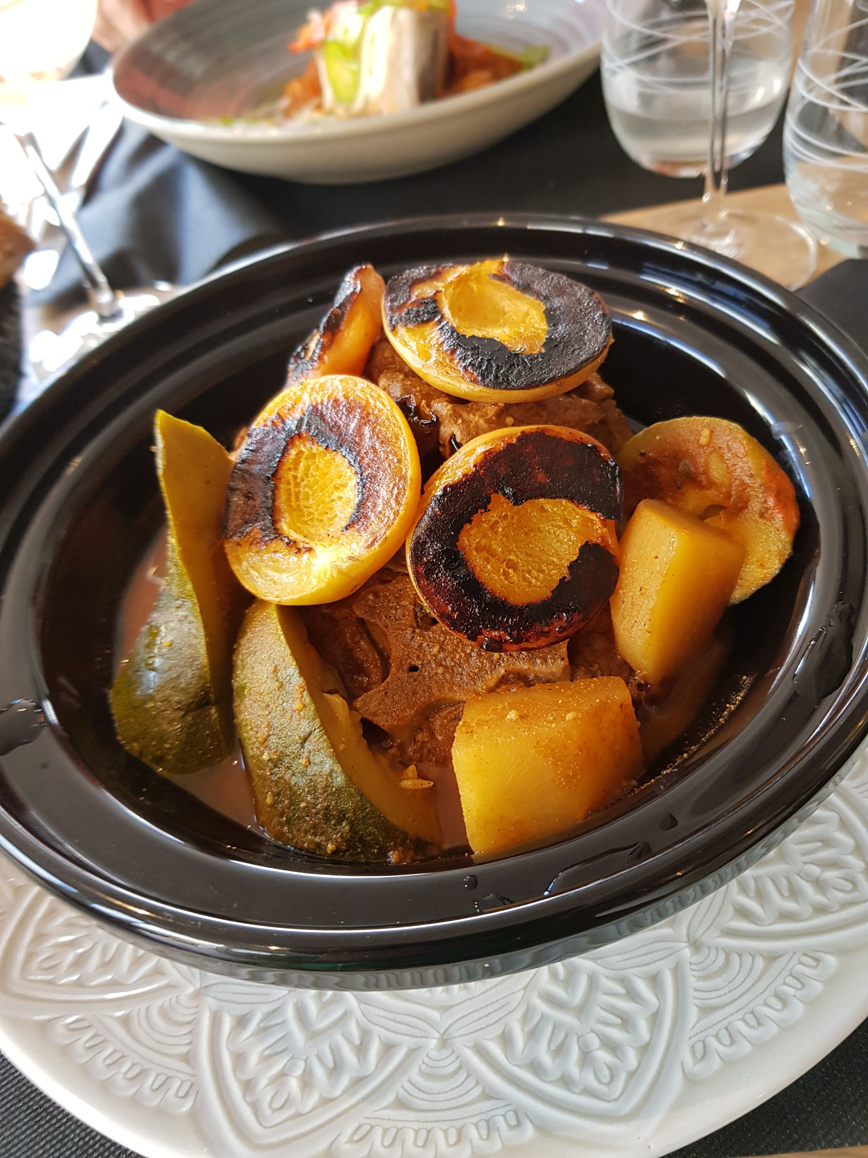 Tajine d’agneau aux abricots à emporter dimanche dernier un vrai bonheur Nous recommandons ce restaurant et nous recommanderons très vite! Dommage la tajine de poulet aux citrons confits n’est pas à emporter? Bonne soirée