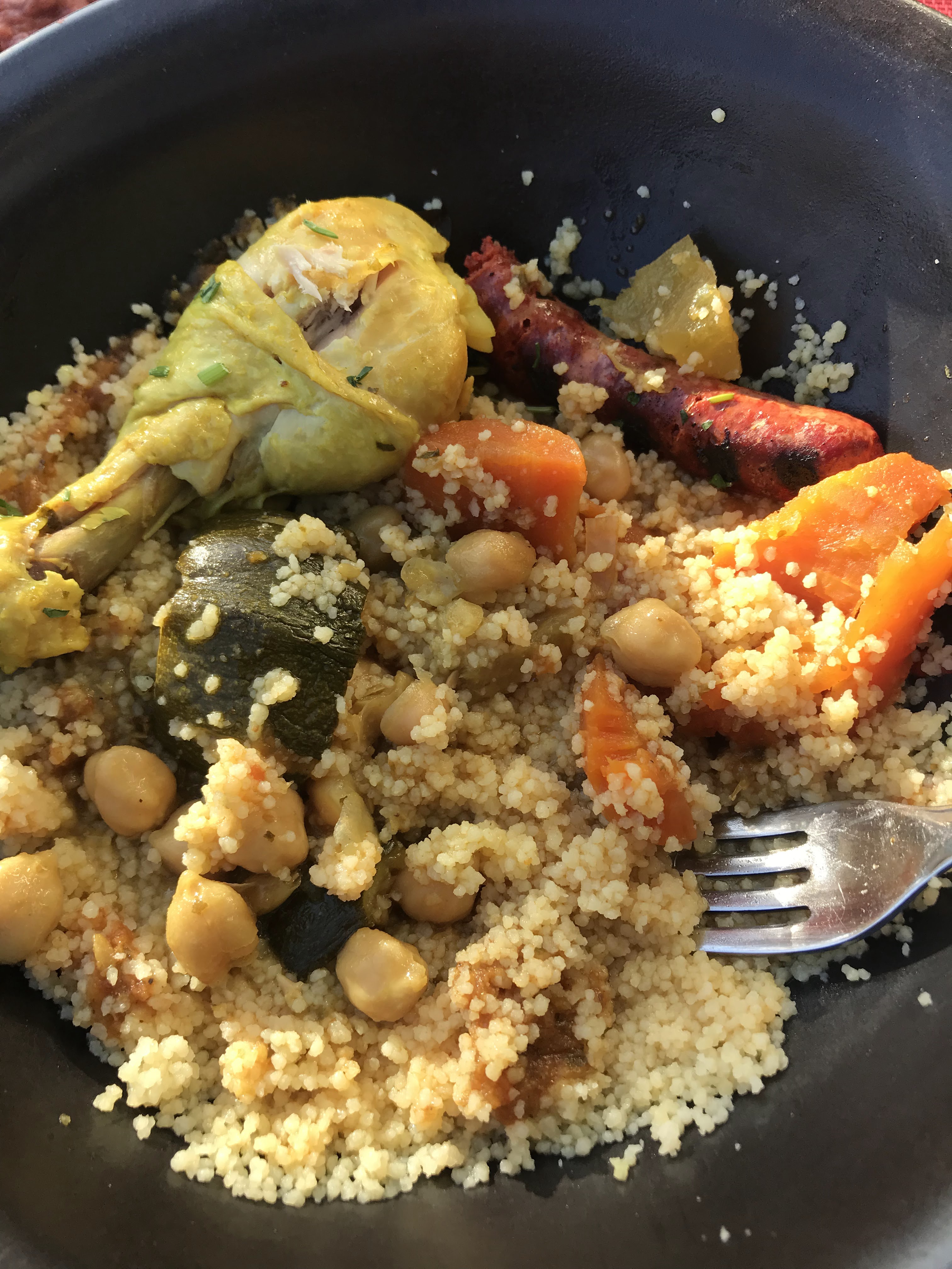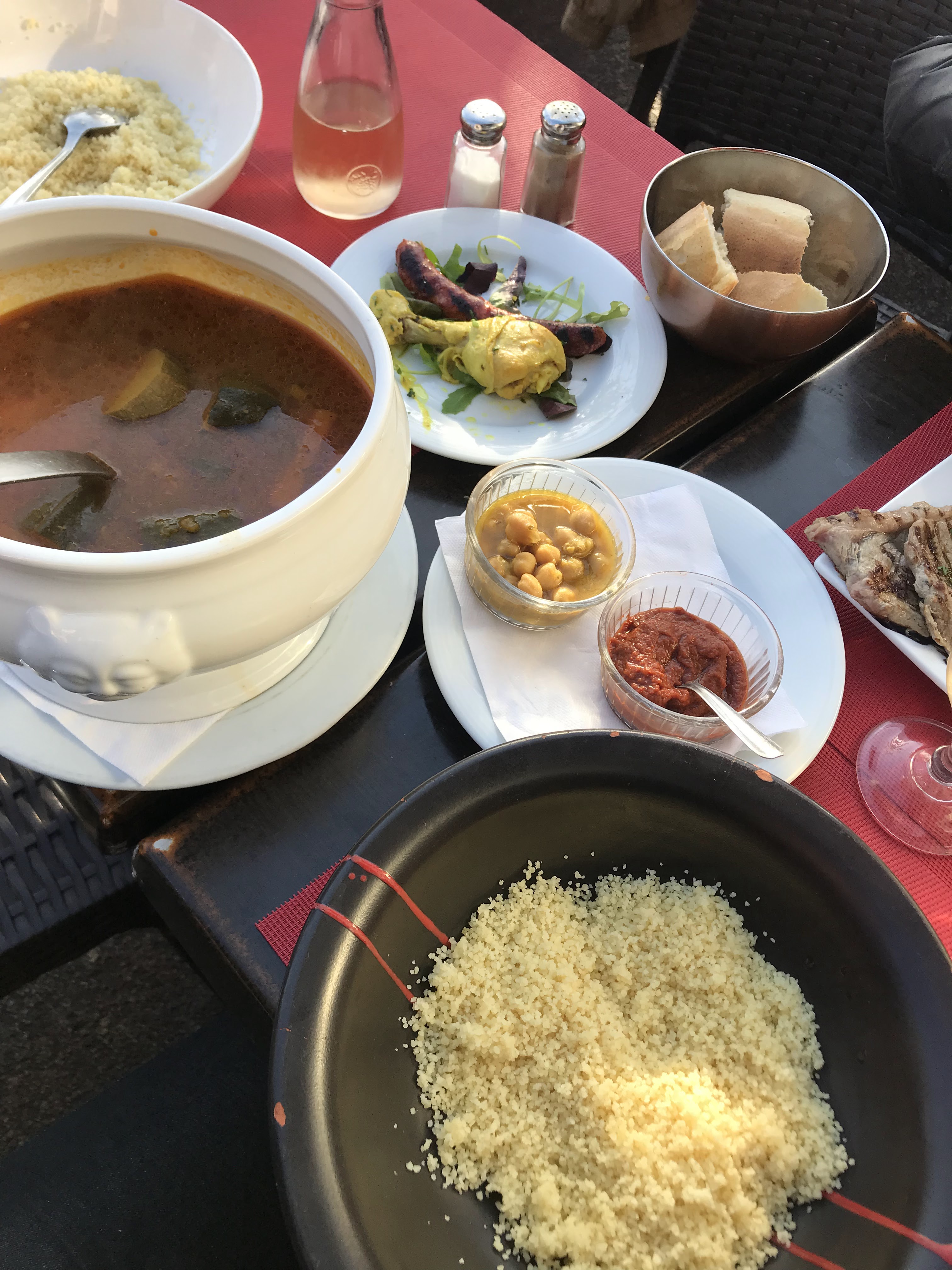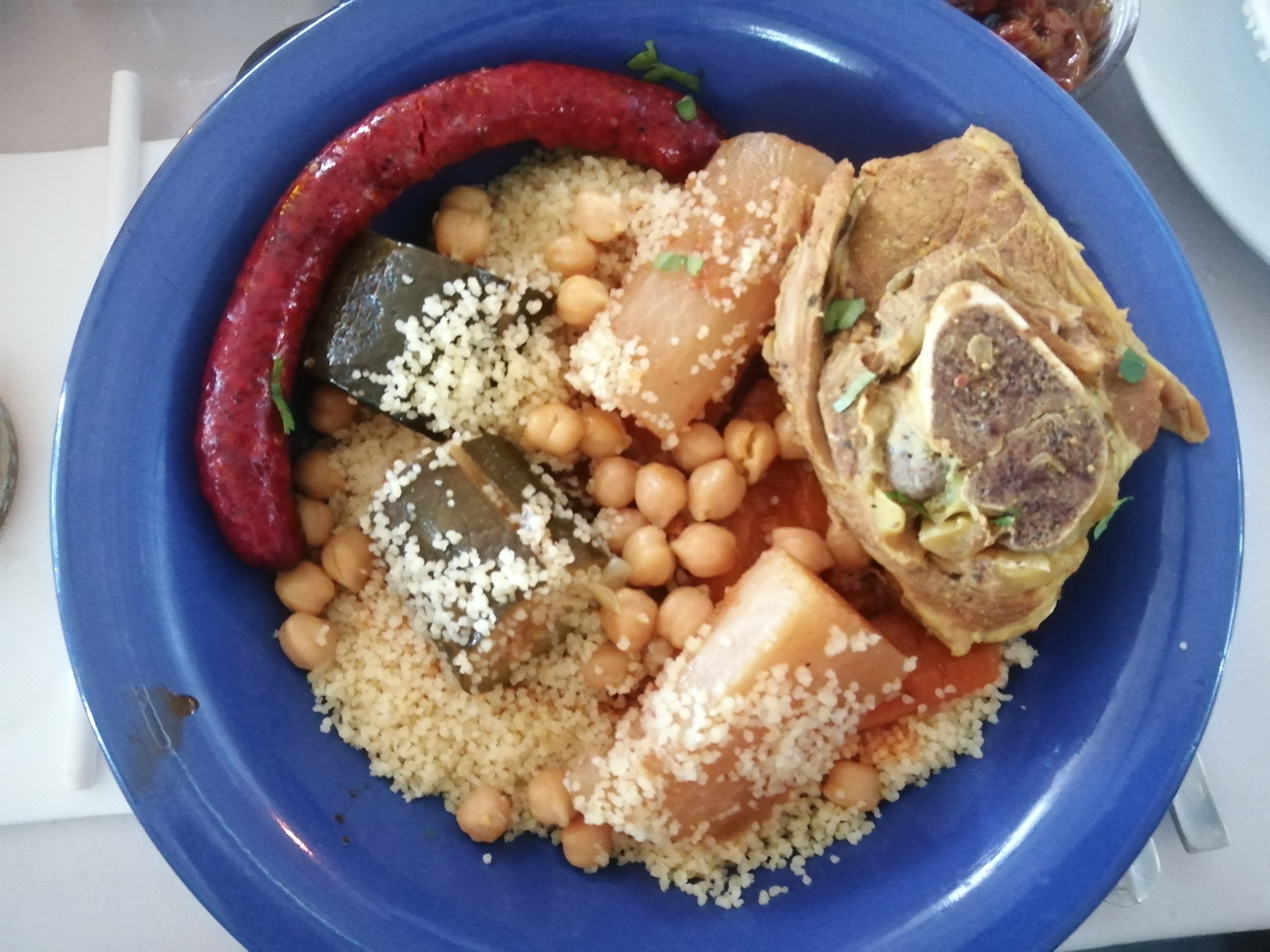 Franchement, ce n'était pas bon. La tajine, trempée dans une sauce pas bonne, avec un tout petit morceau de poisson et quelques petits légumes, n'en valait pas le coup. Le couscous poulet, avec un minuscule poulet, était moyen. Et les pâtes, très cuites étaient immangeables. Une grande déception!