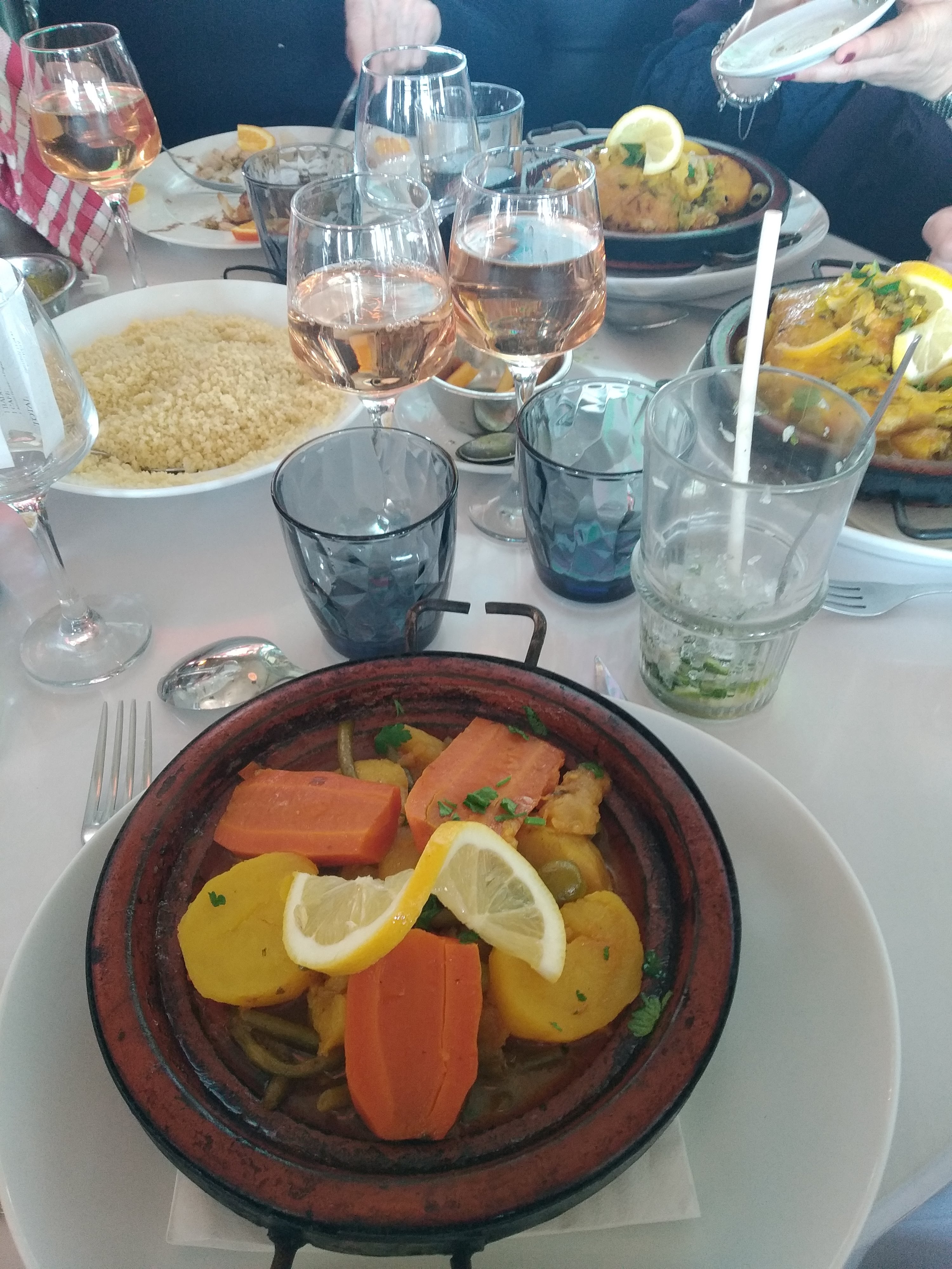 Excellent repas, dépaysant et copieux, en terrasse abritée qui nous a fait oublier la pluie battante pour nous transporter au pays du soleil. Tajine pruneaux, abricots, amandes délicieux. Service à notre écoute. A recommander!