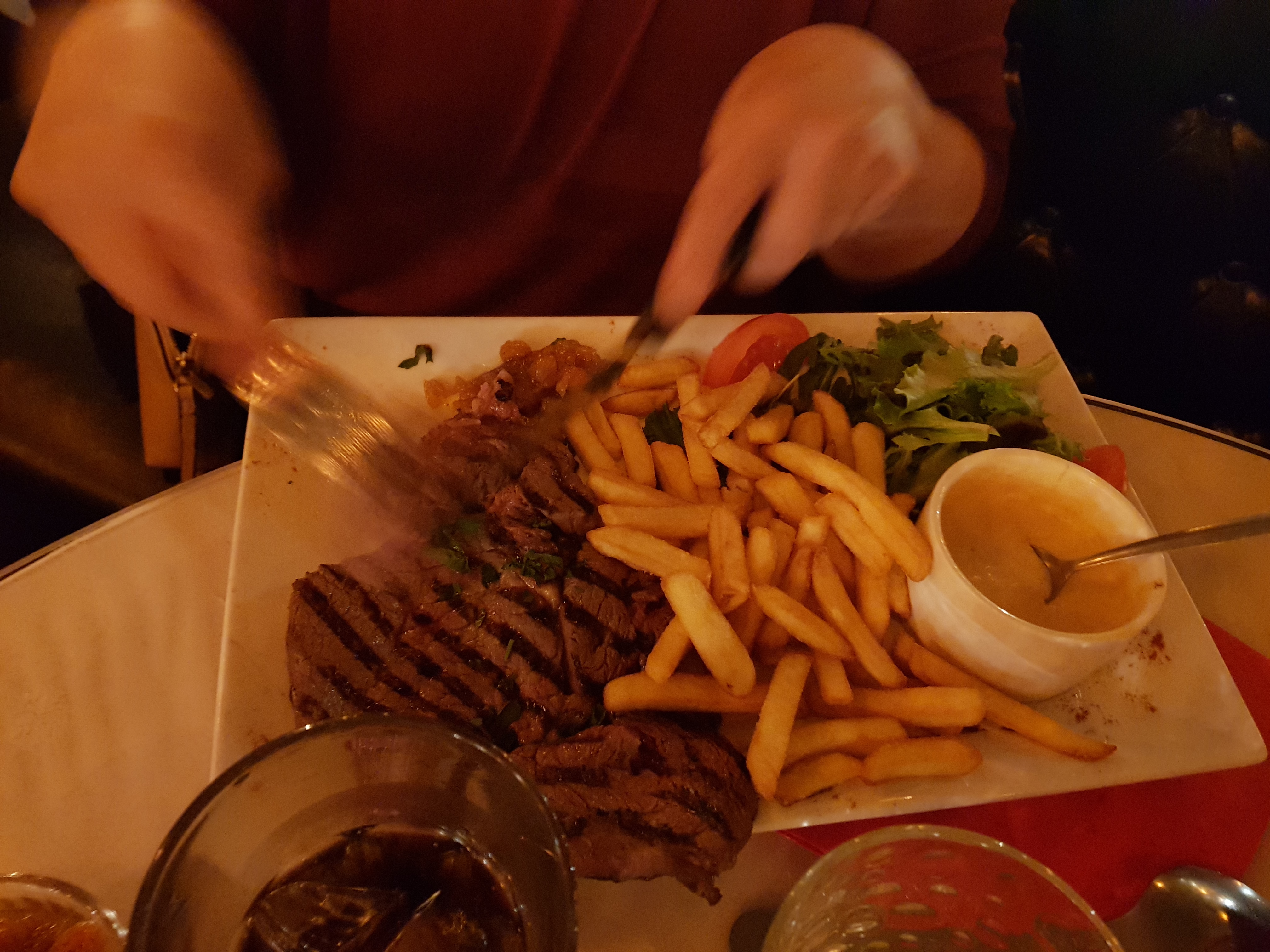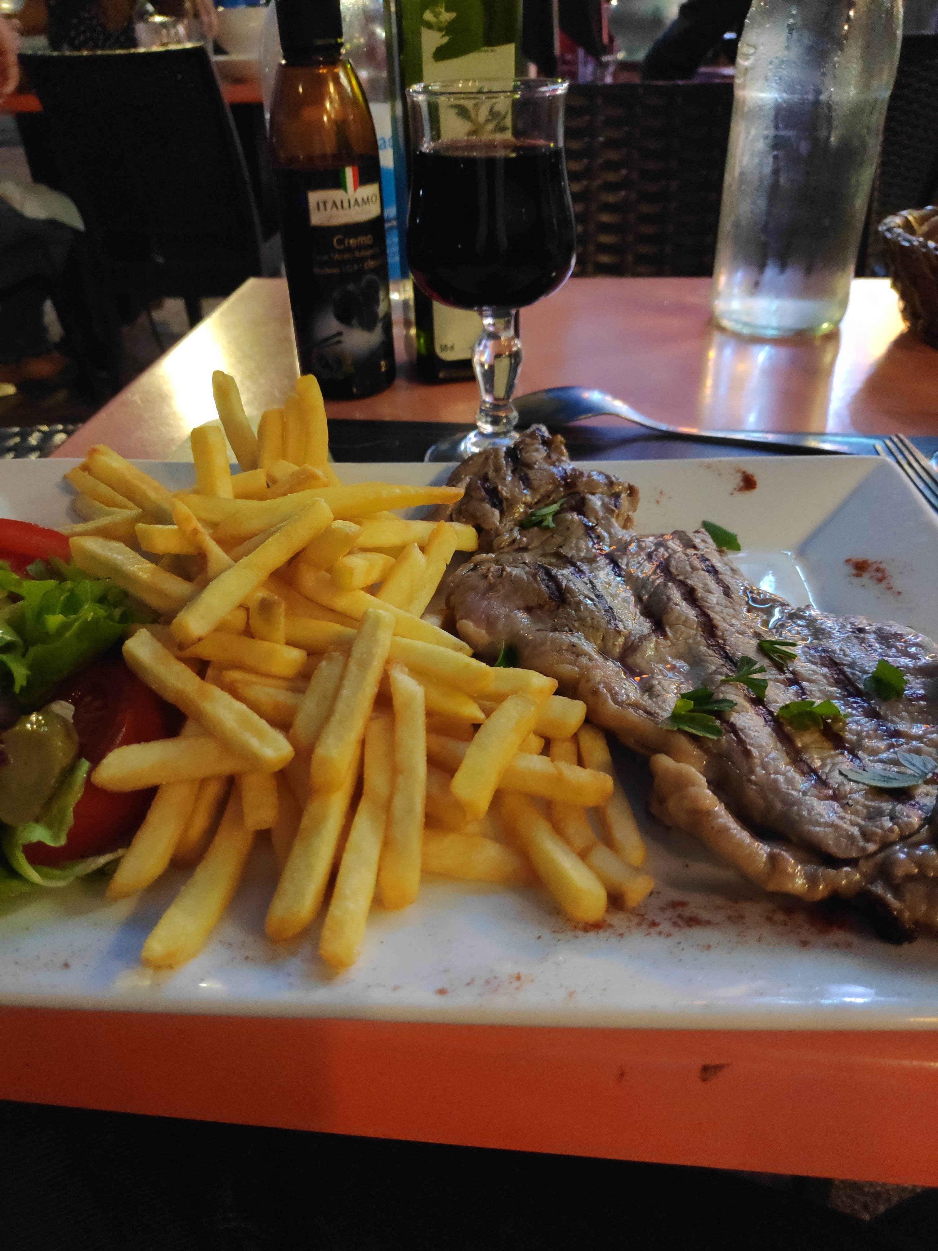 Superbe cadre en face de la promenade des anglais. Menu à 25€: Melon Entrecôte Tiramisu Pas mauvais sans être exceptionnel. Surgelés pour les frites et les condiments sont achetés à Lidl (j'ai les mêmes à la maison). Service fluide au début puis un peu long avec l'affluence. Rapide pour l'addition 😉