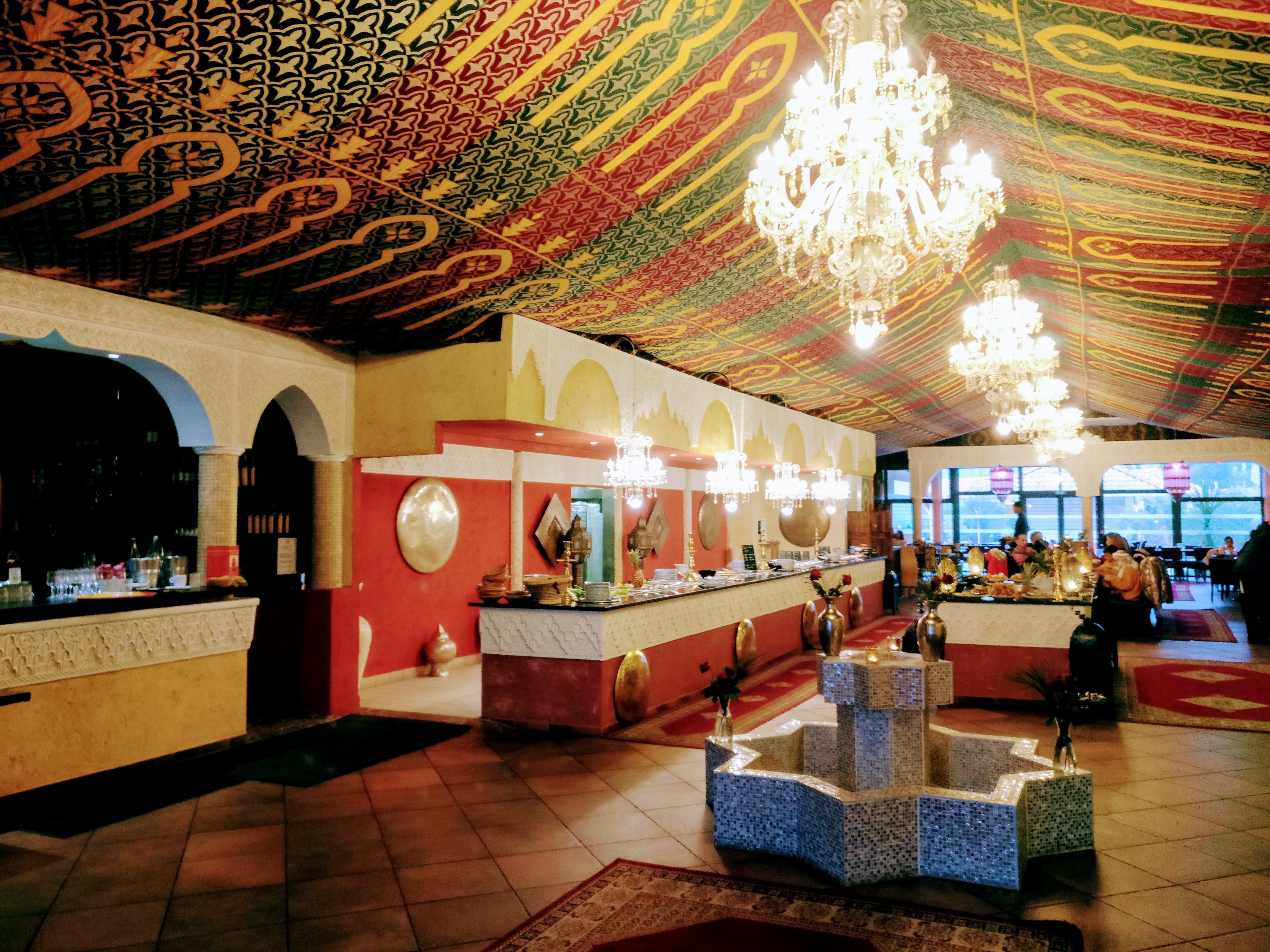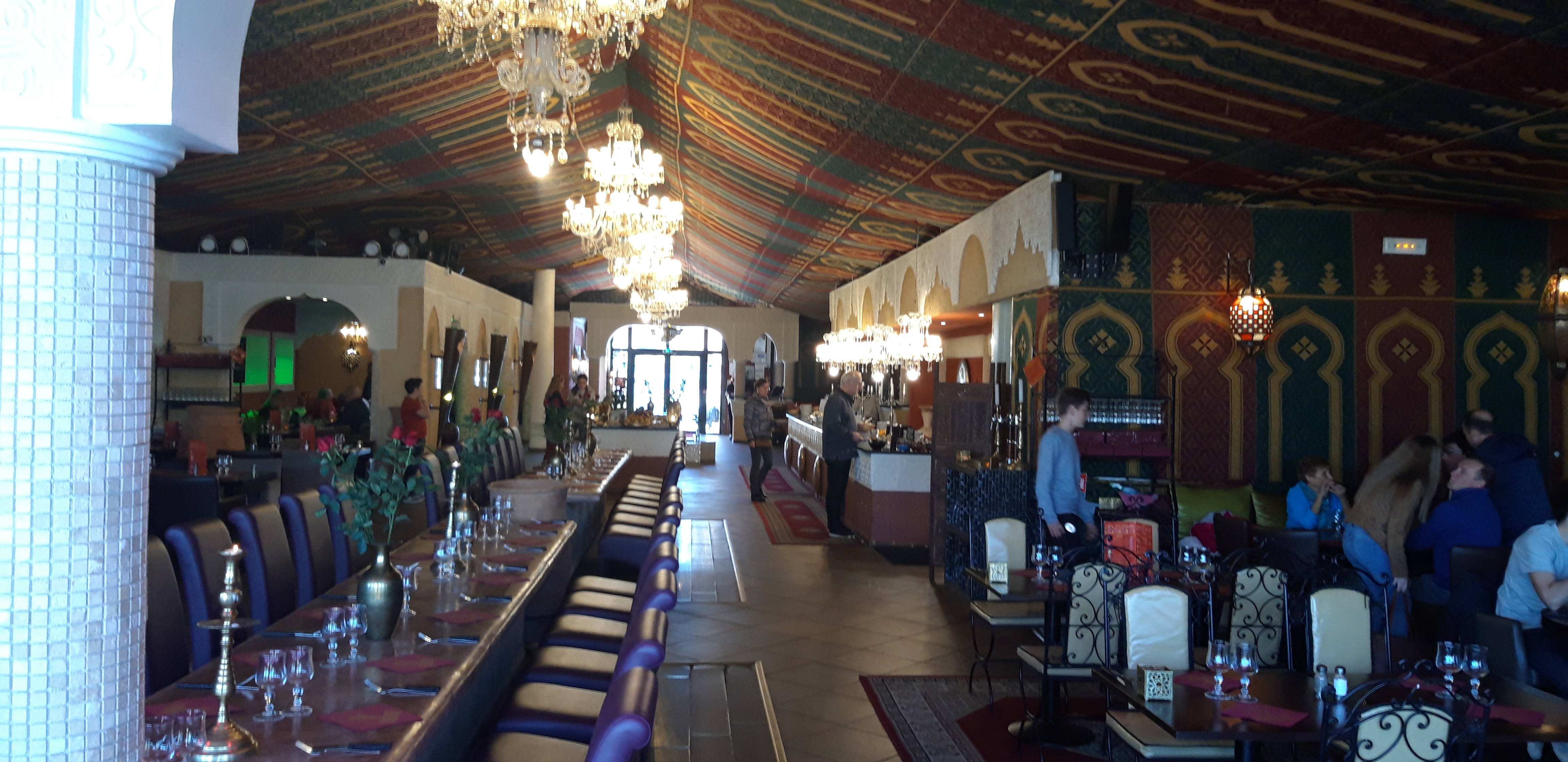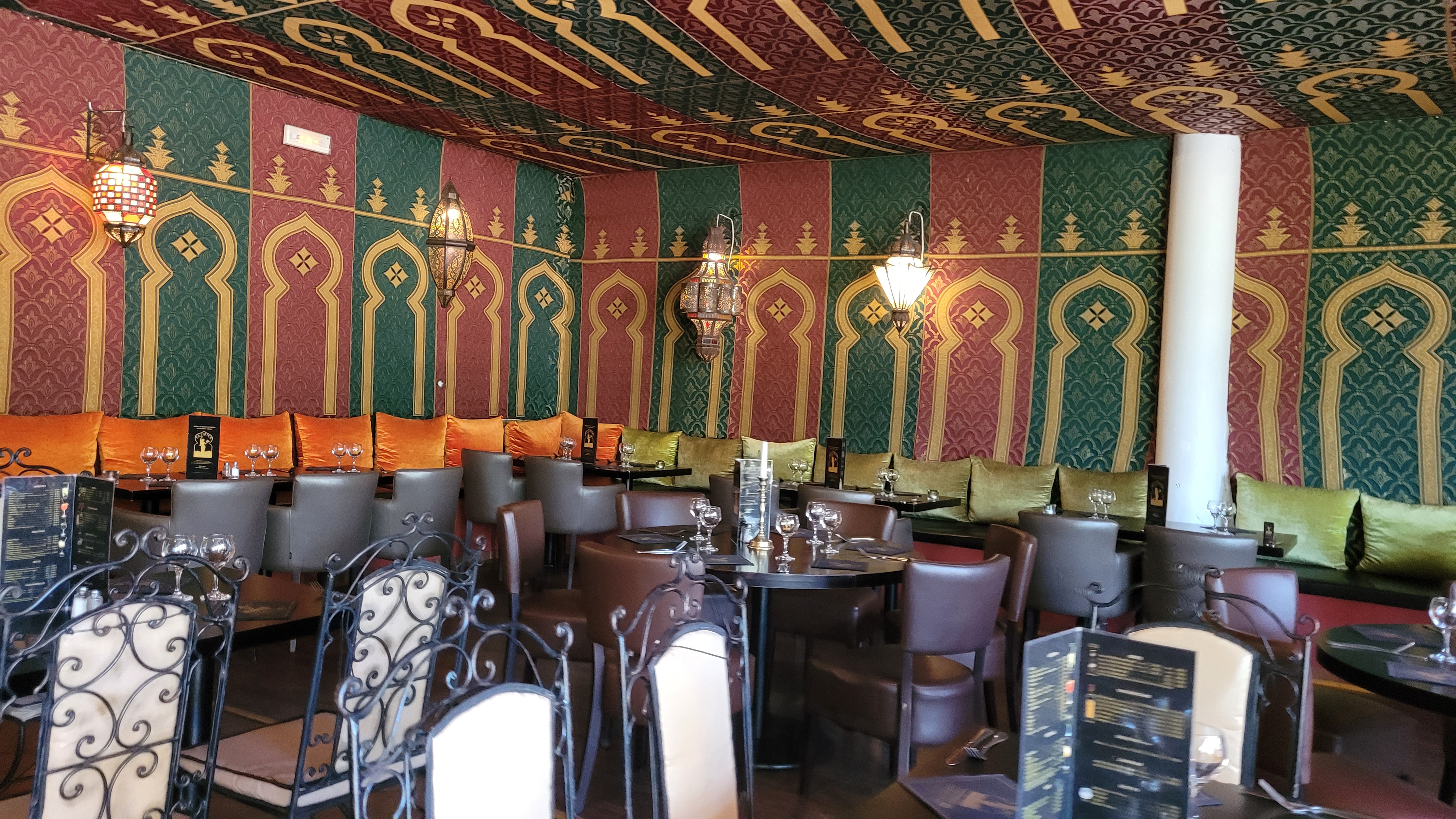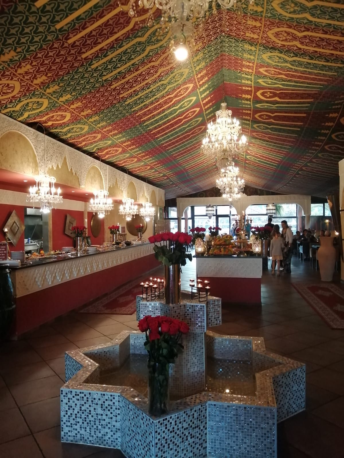 Un espace restauration visuellement impressionnant, le dépaysement est garantie. Le buffet à volonté est généreux. Une danseuse orientale pour le plaisir des yeux en bonus.