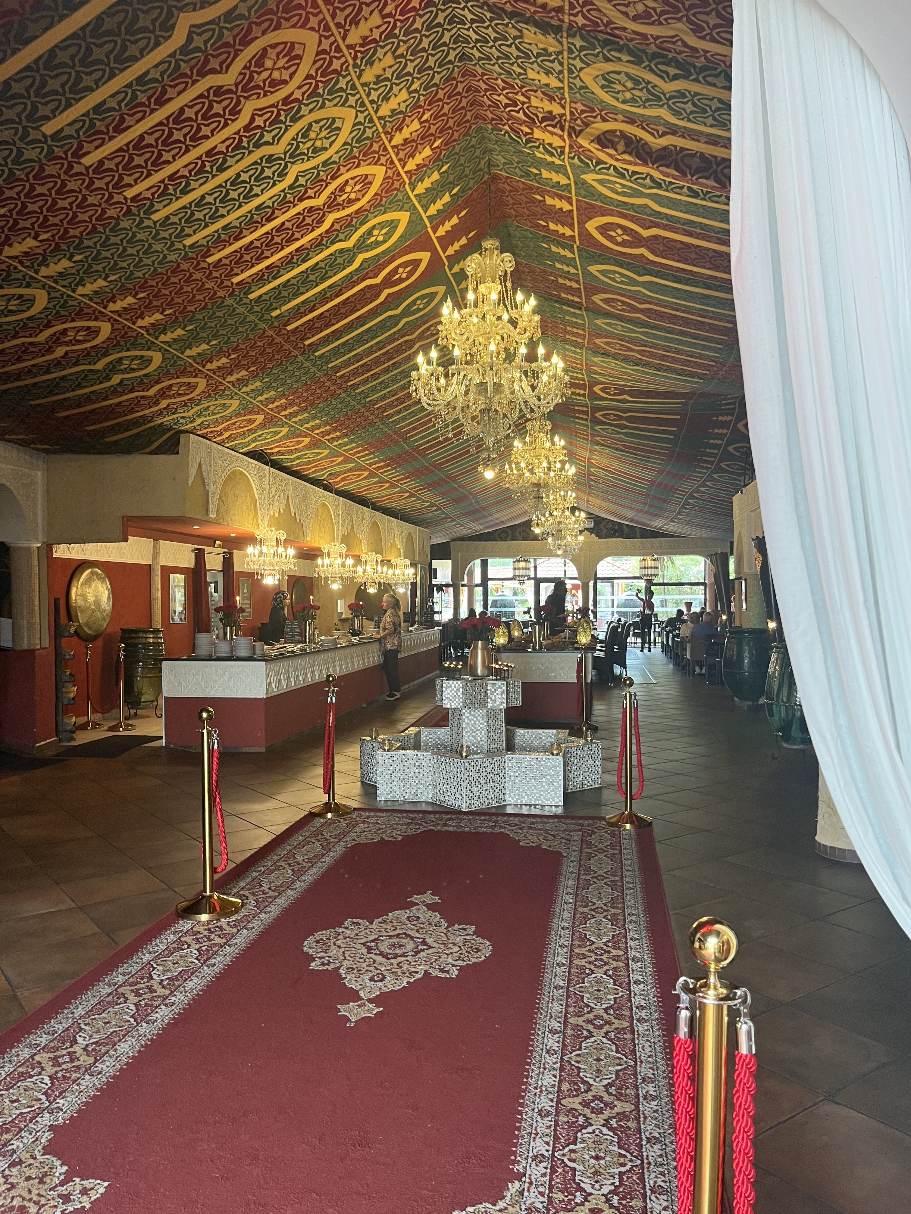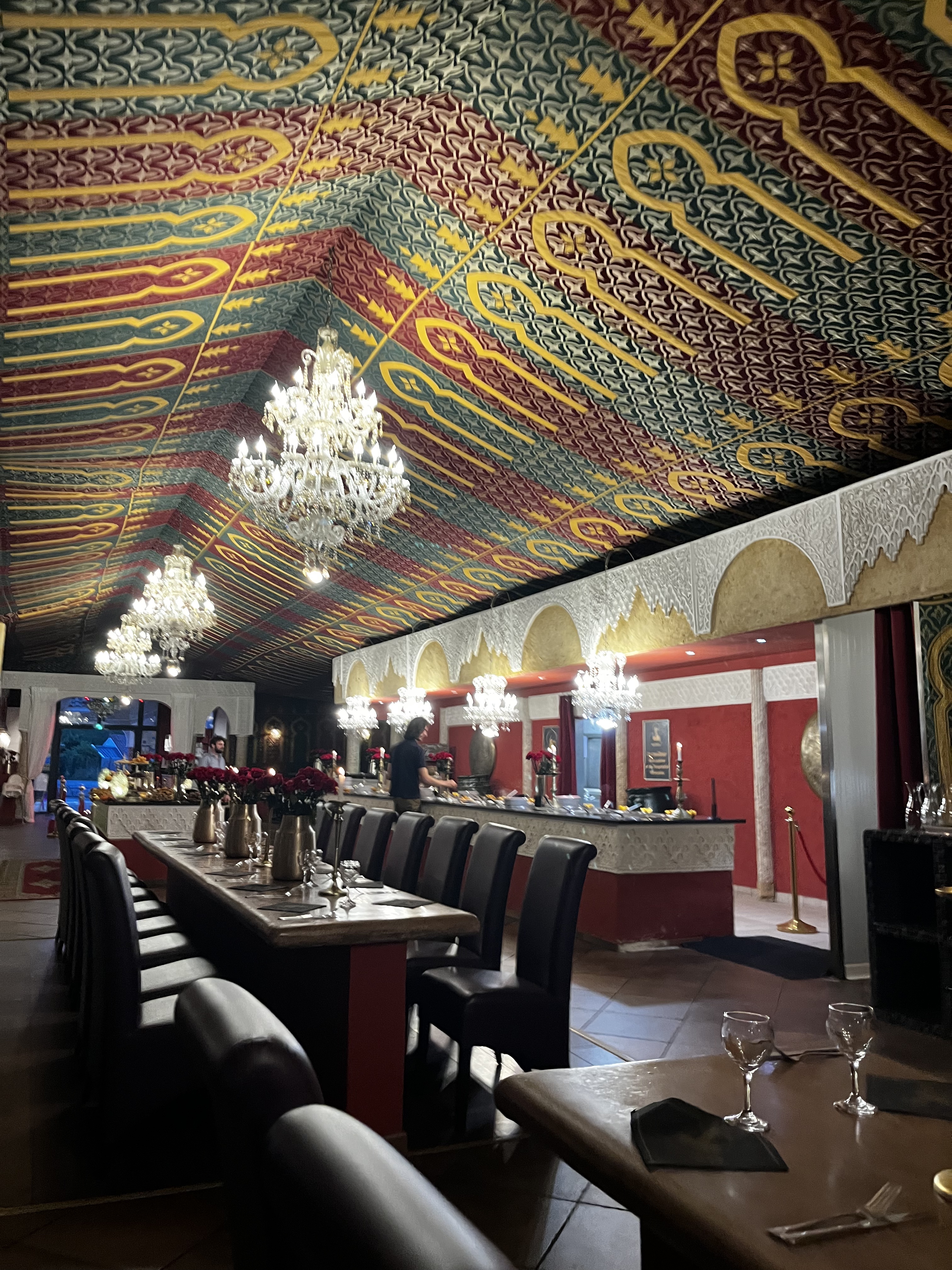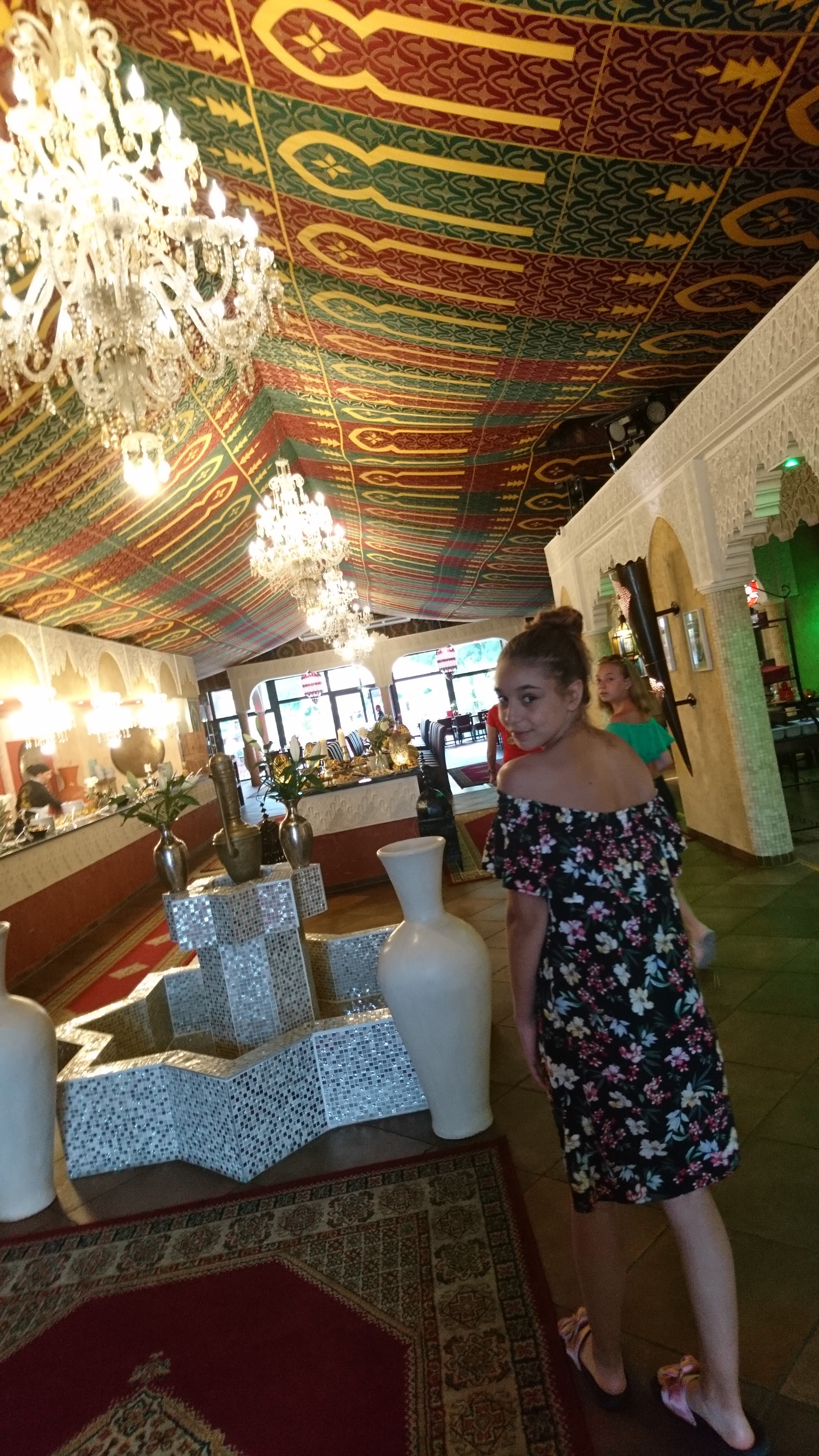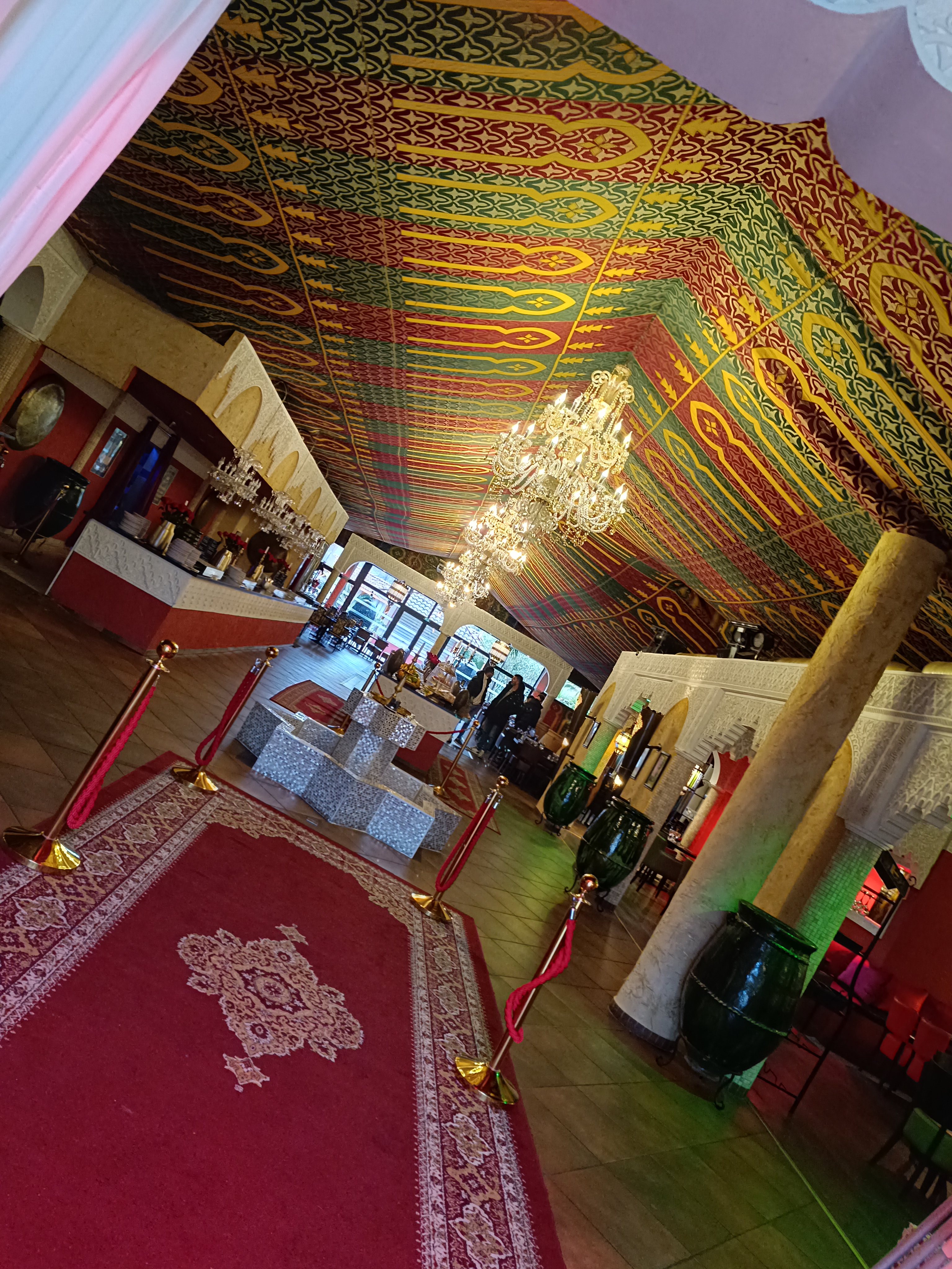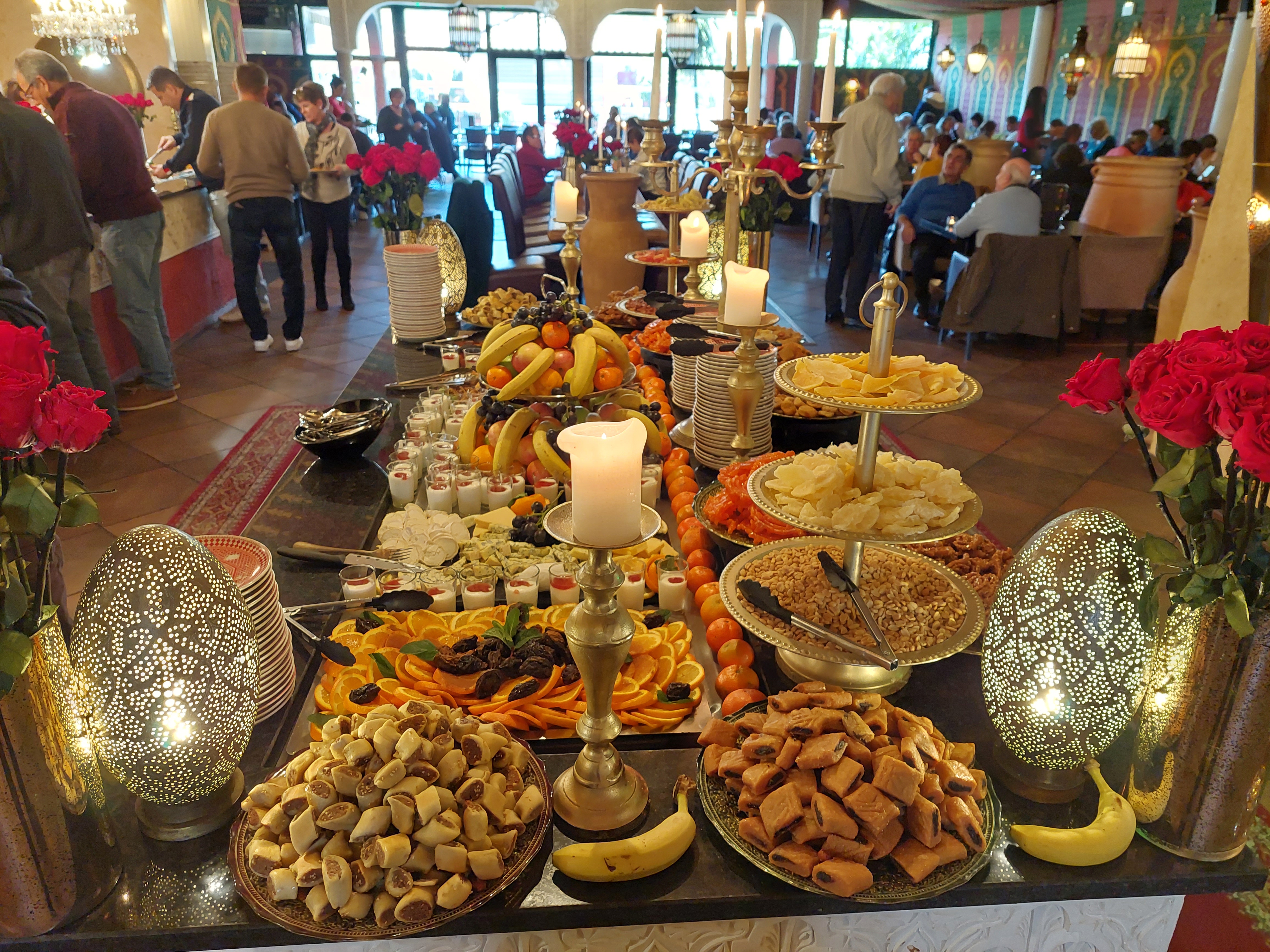 Un espace restauration visuellement impressionnant, le dépaysement est garantie. Le buffet à volonté est généreux. Une danseuse orientale pour le plaisir des yeux en bonus.