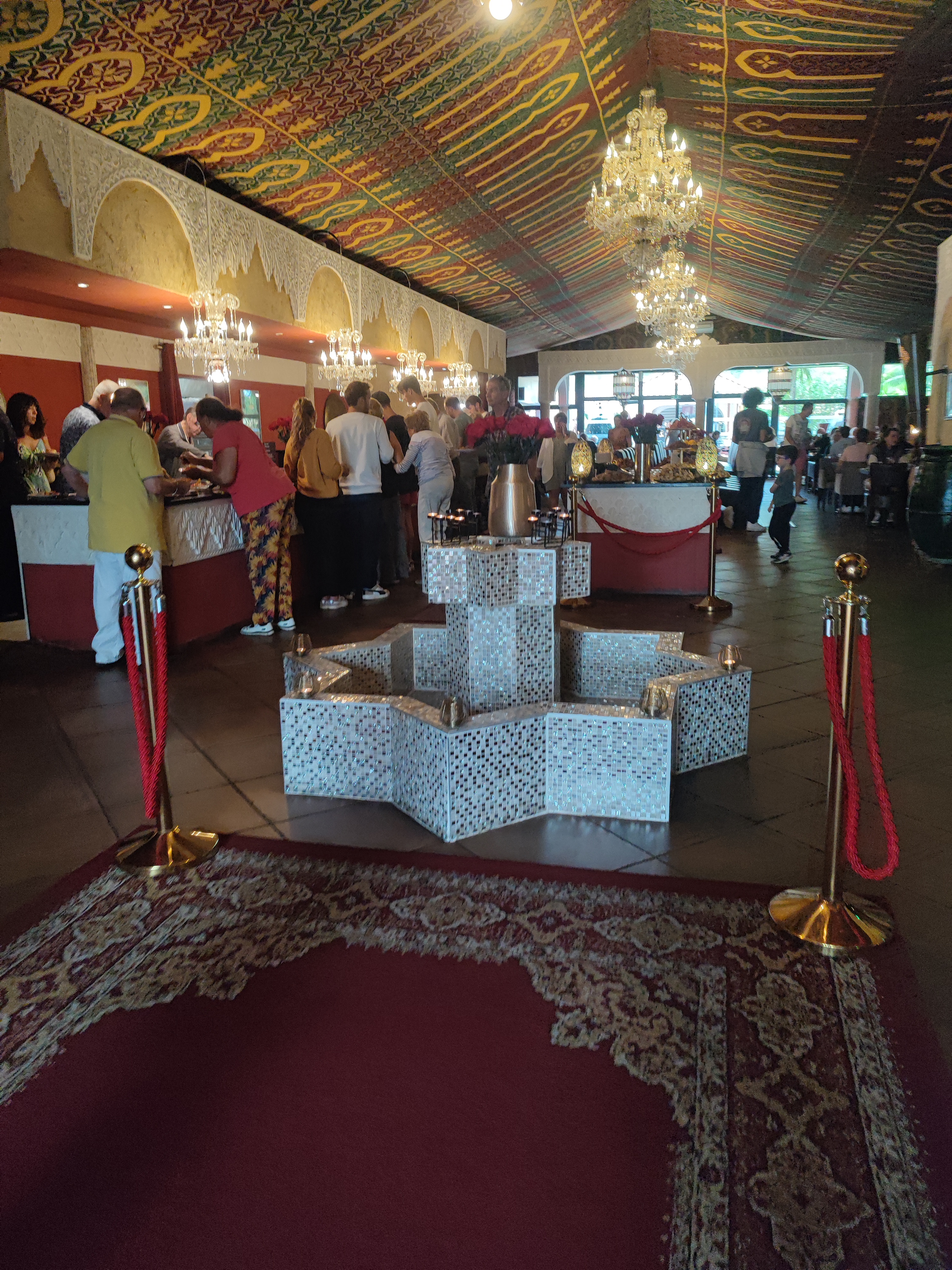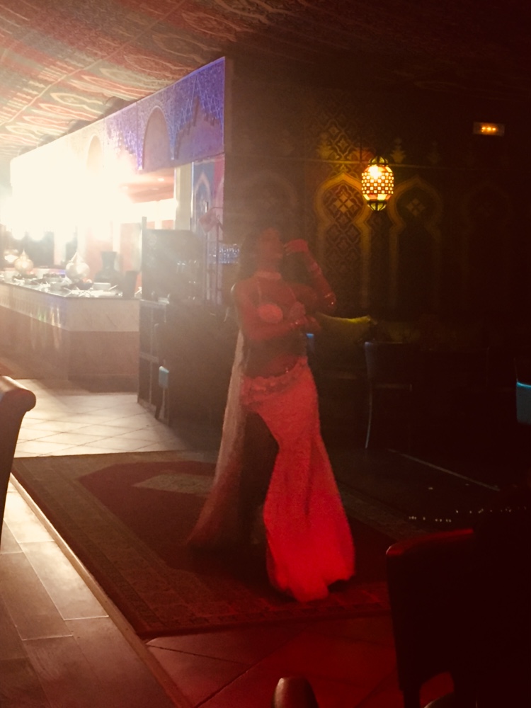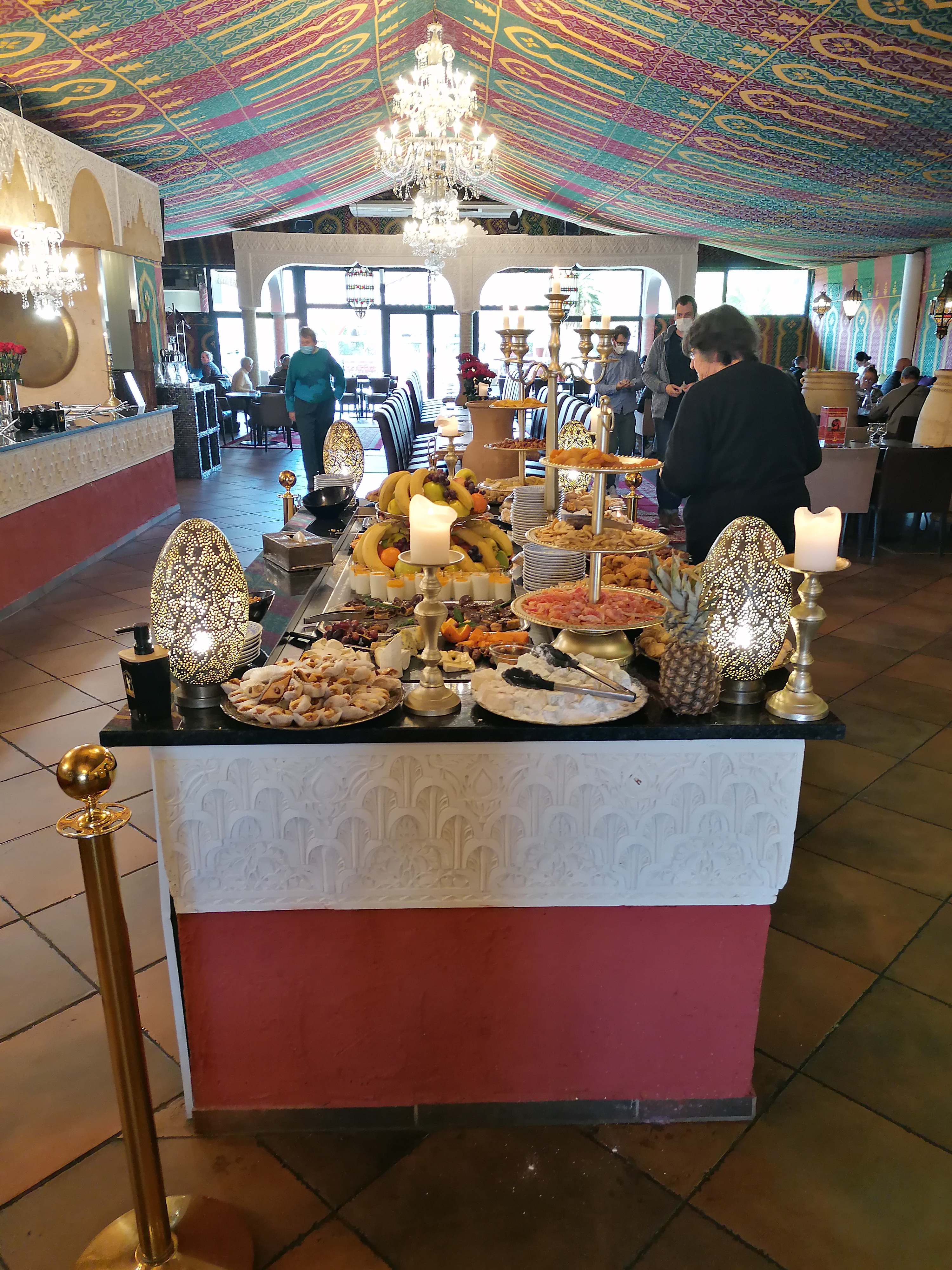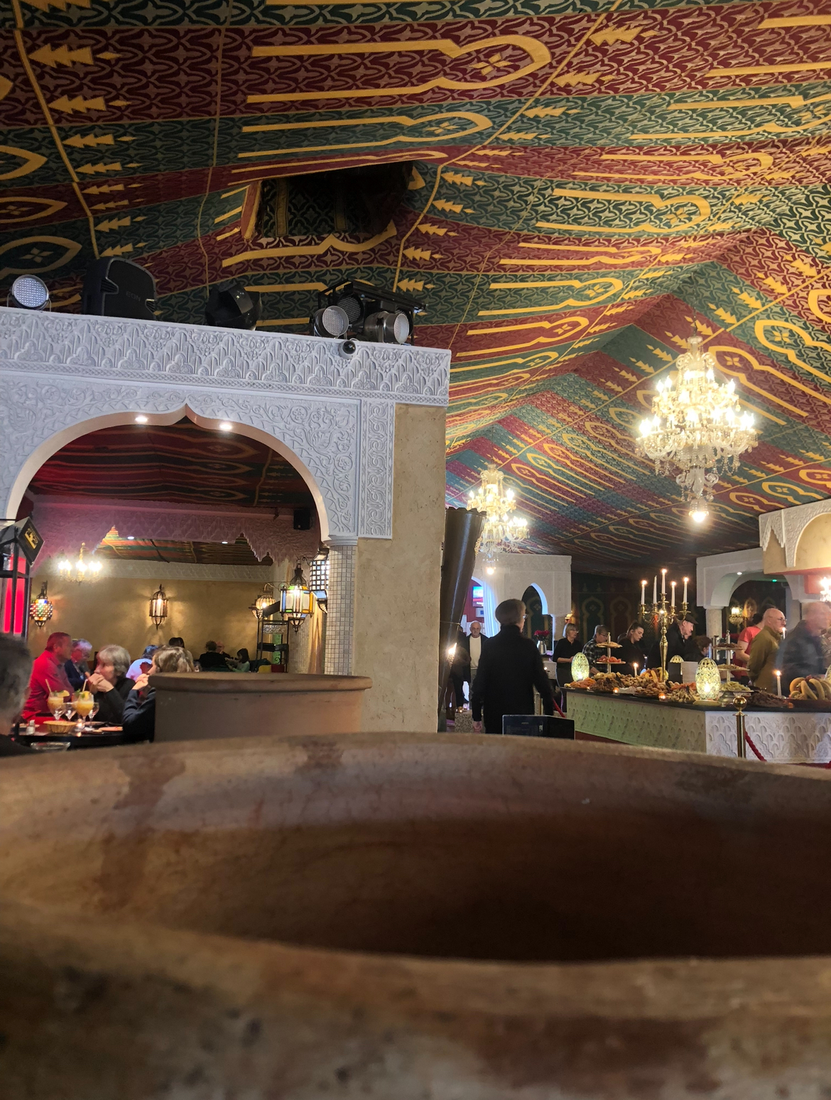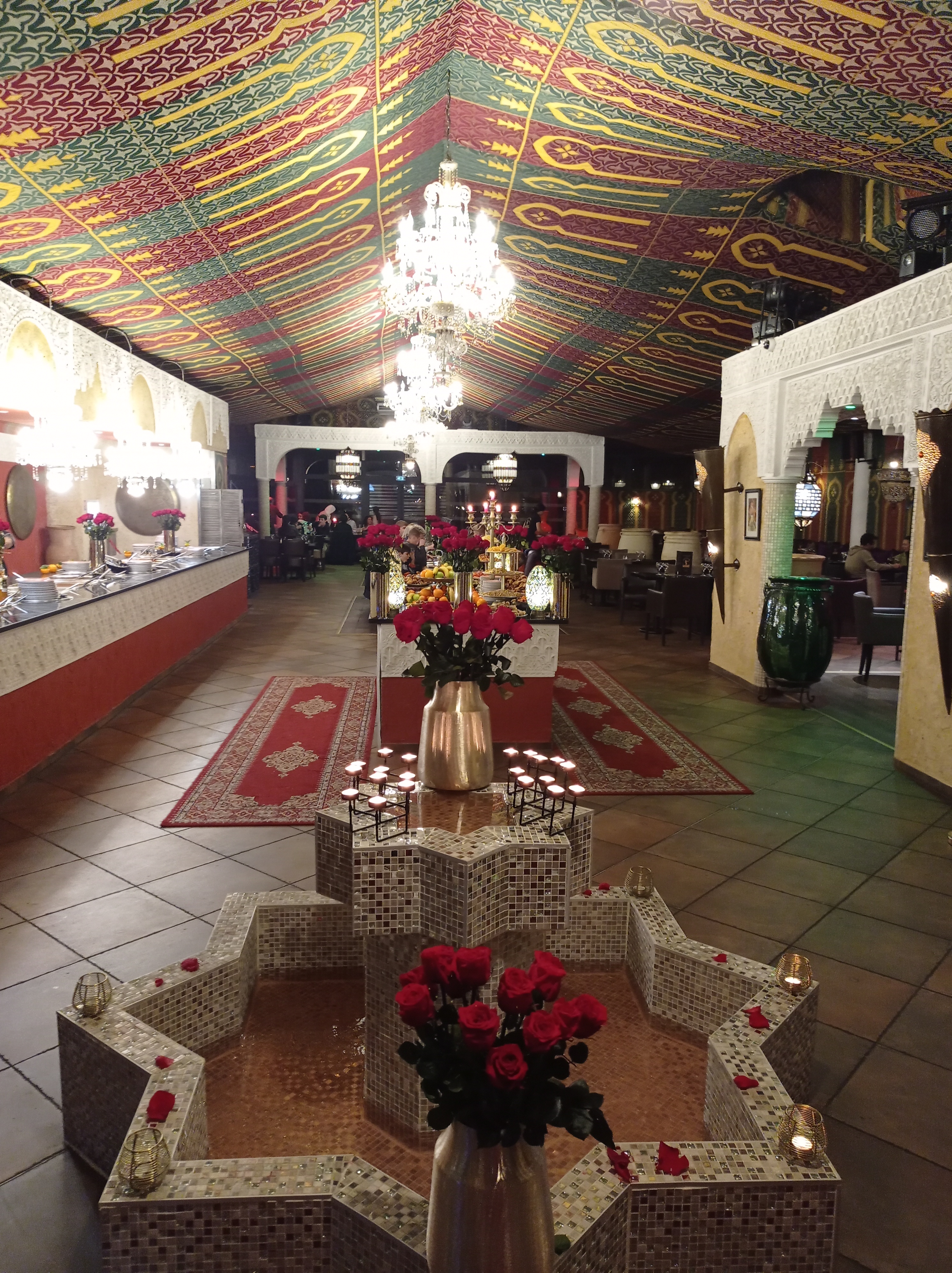 Un espace restauration visuellement impressionnant, le dépaysement est garantie. Le buffet à volonté est généreux. Une danseuse orientale pour le plaisir des yeux en bonus.