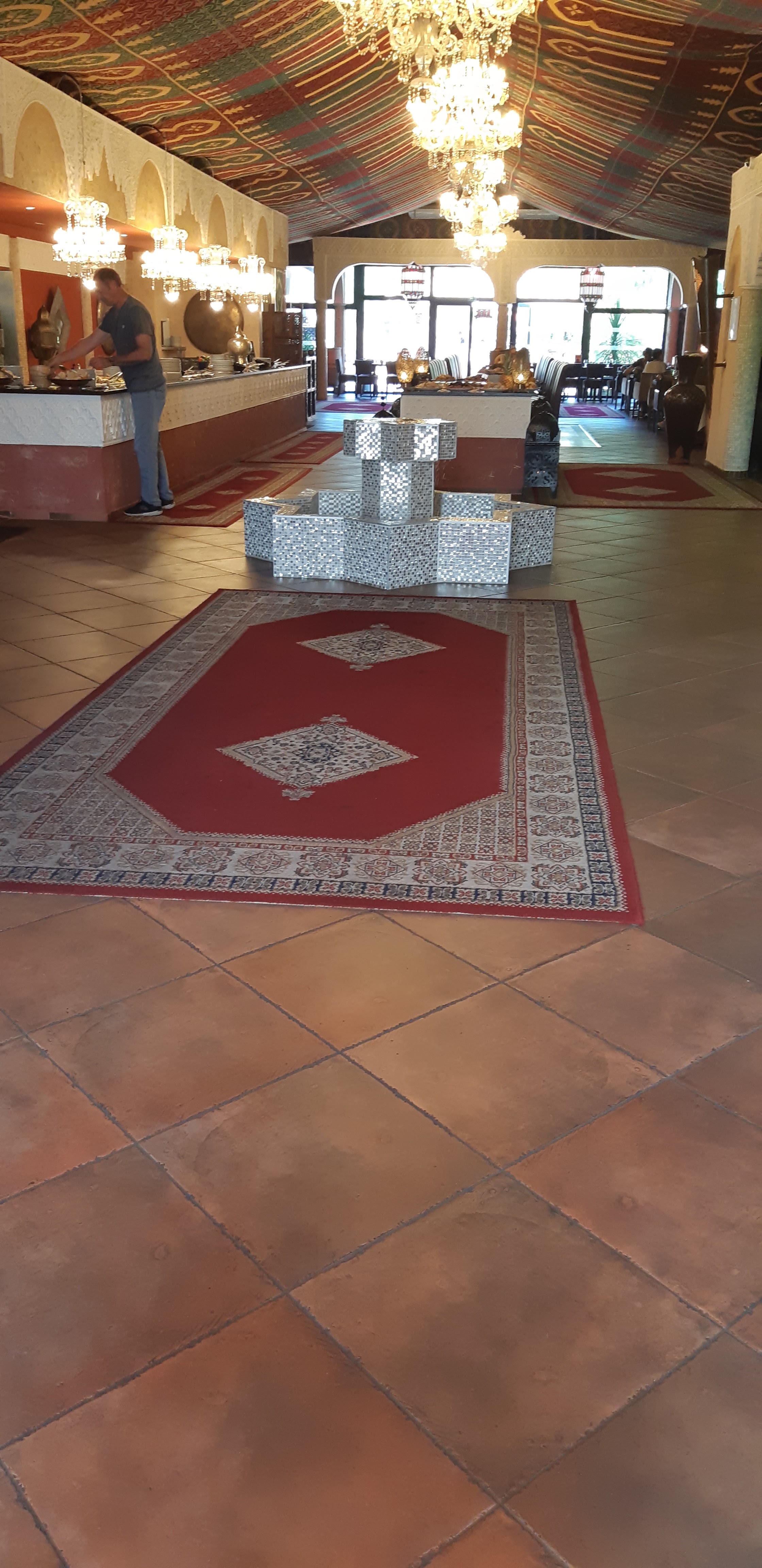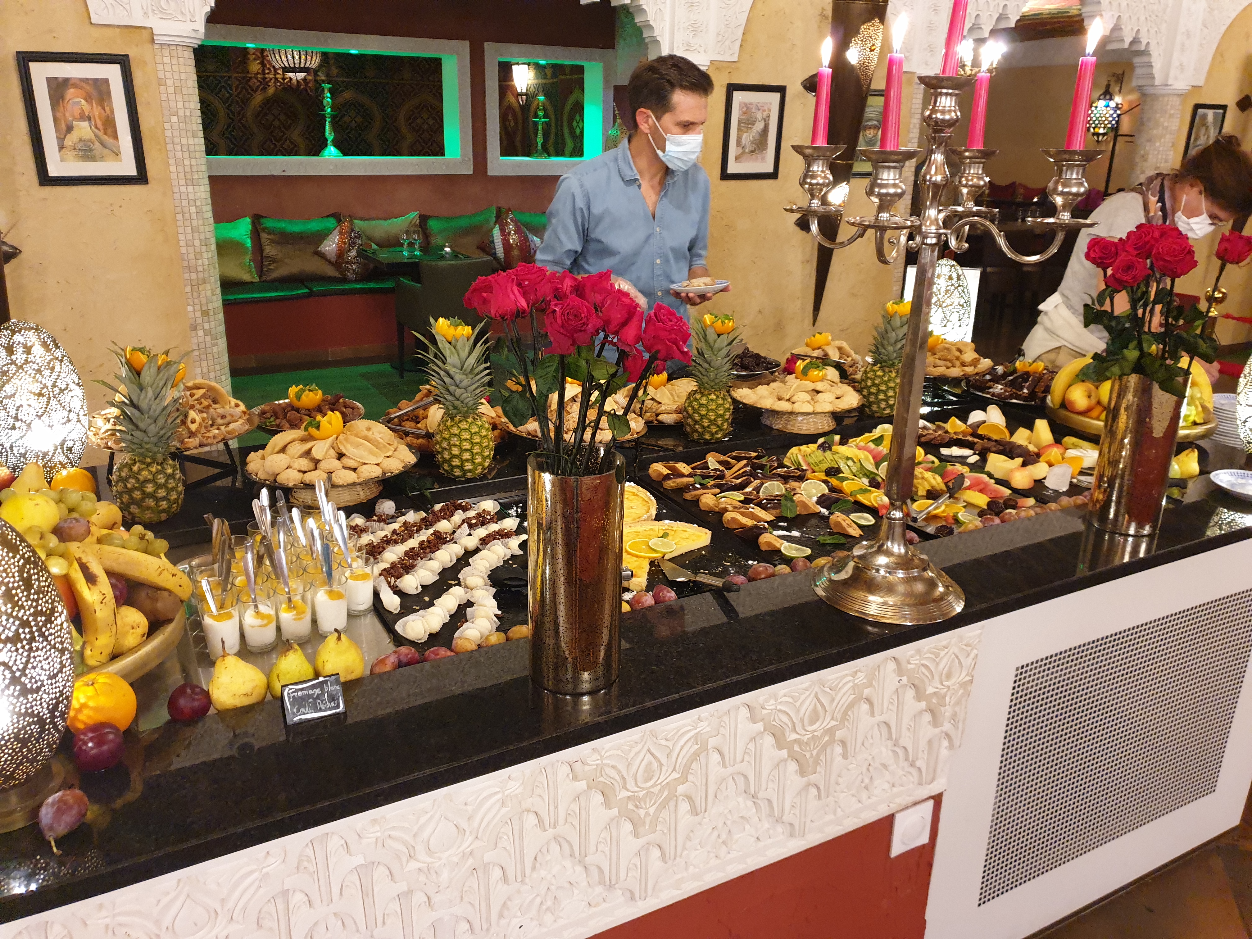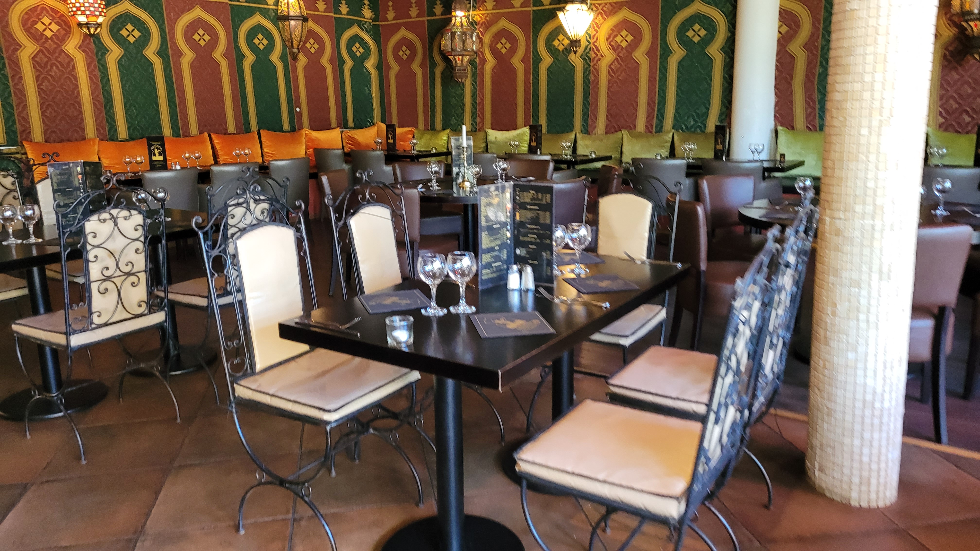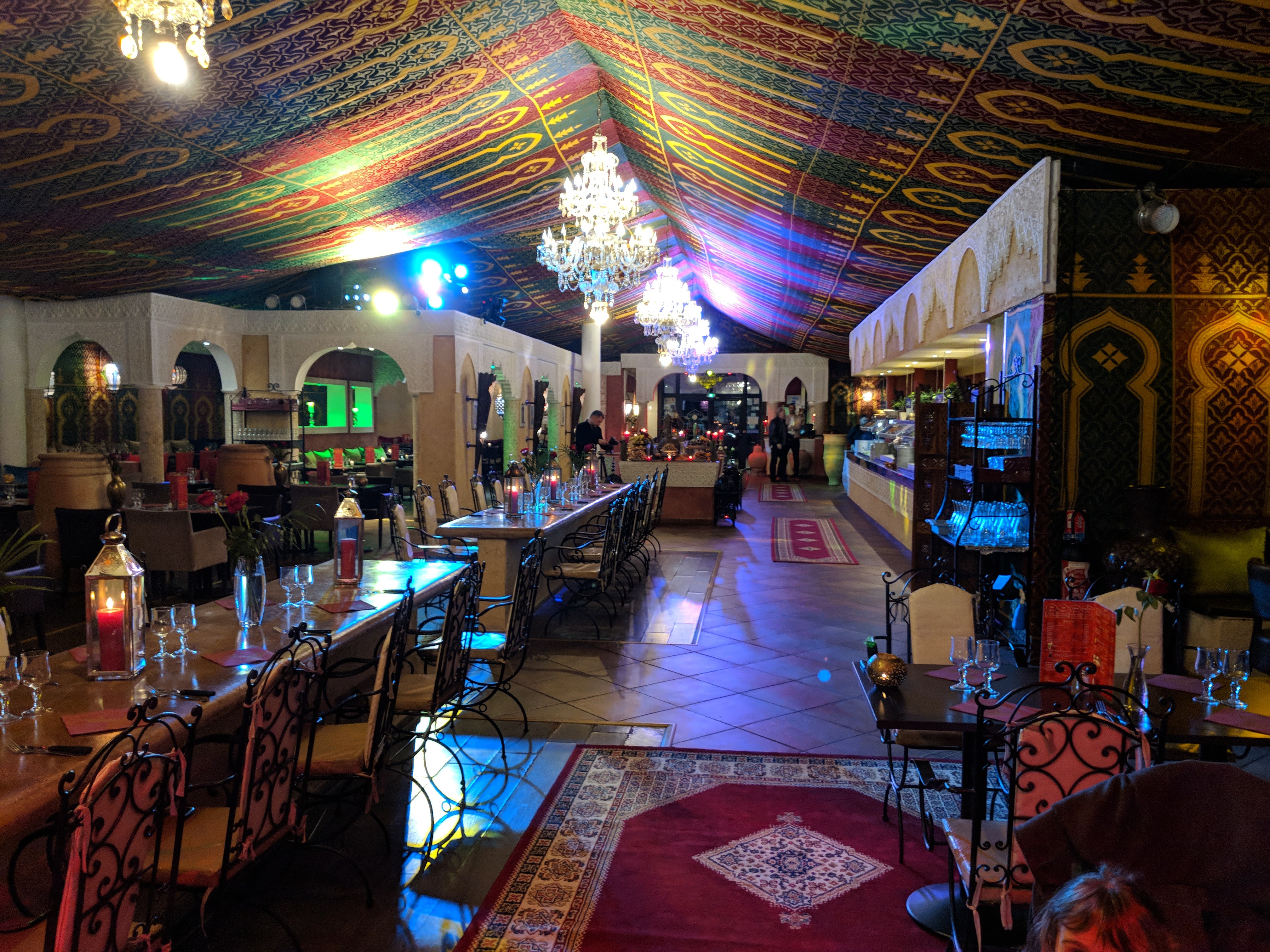 Un espace restauration visuellement impressionnant, le dépaysement est garantie. Le buffet à volonté est généreux. Une danseuse orientale pour le plaisir des yeux en bonus.