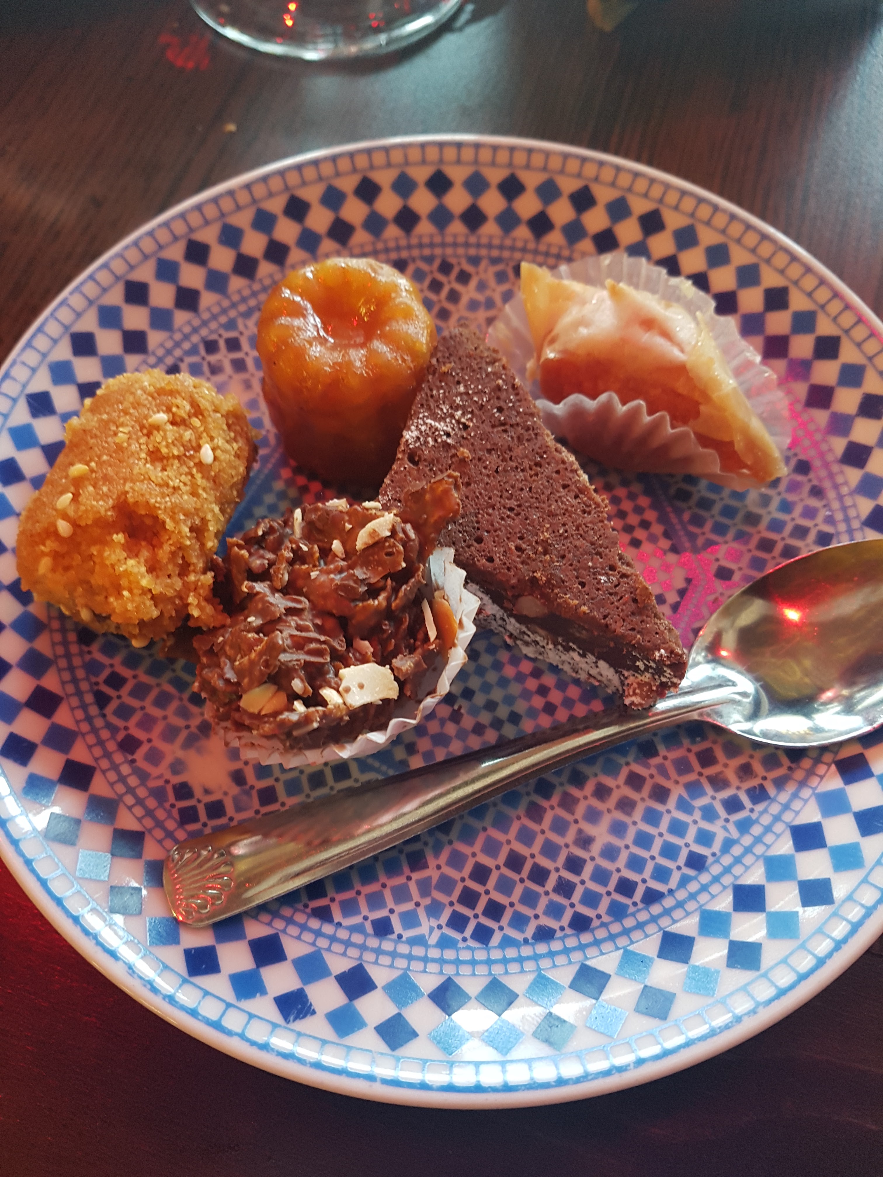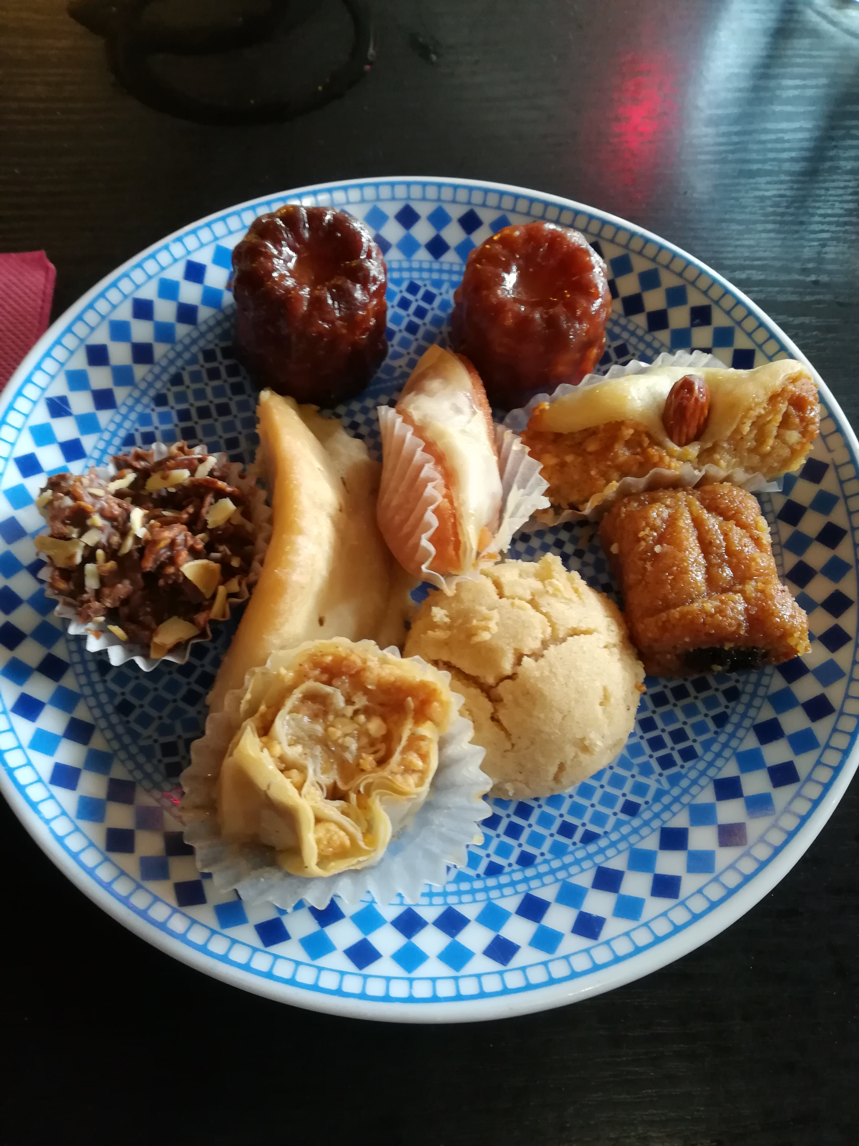 Plat et dessert délicieux, le thé à la menthe est exquis. Buffet à volonté avec pas mal de choix Je recommande à 1000%