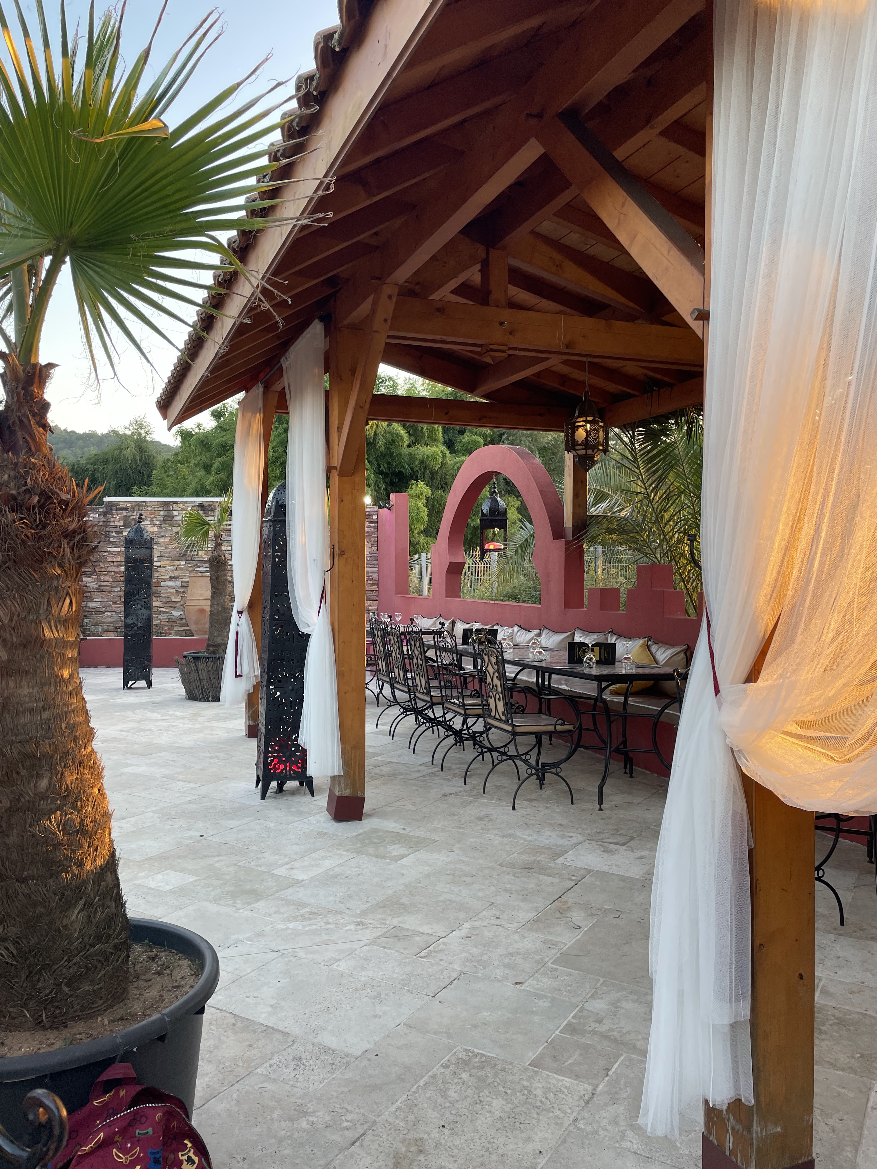 Le cadre est magnifique, j'ai voyager au Maroc. L'intérieur est très bien décoré. La terrasse est très belle aussi. La nourriture est bonne et le personnel très gentil.