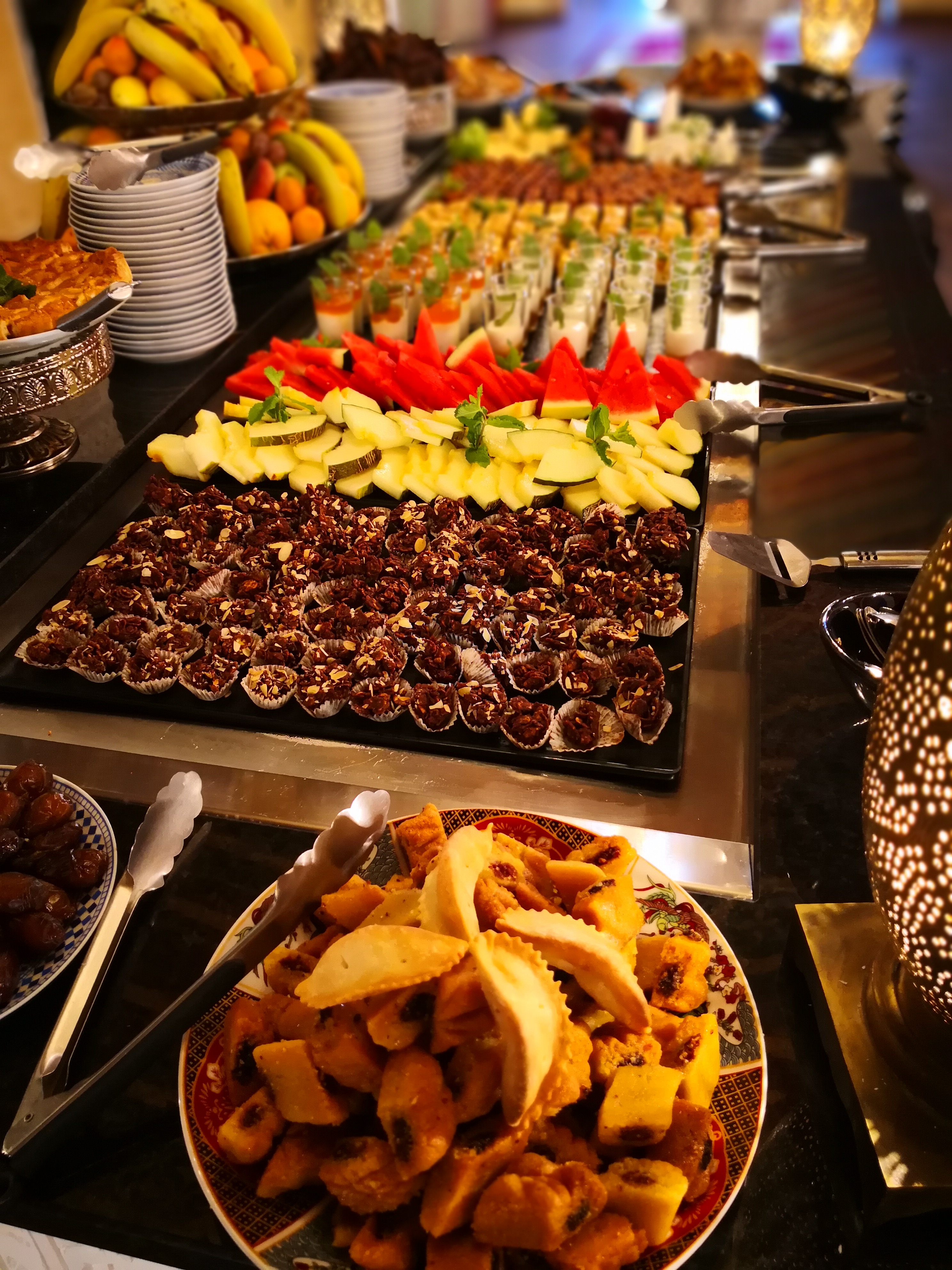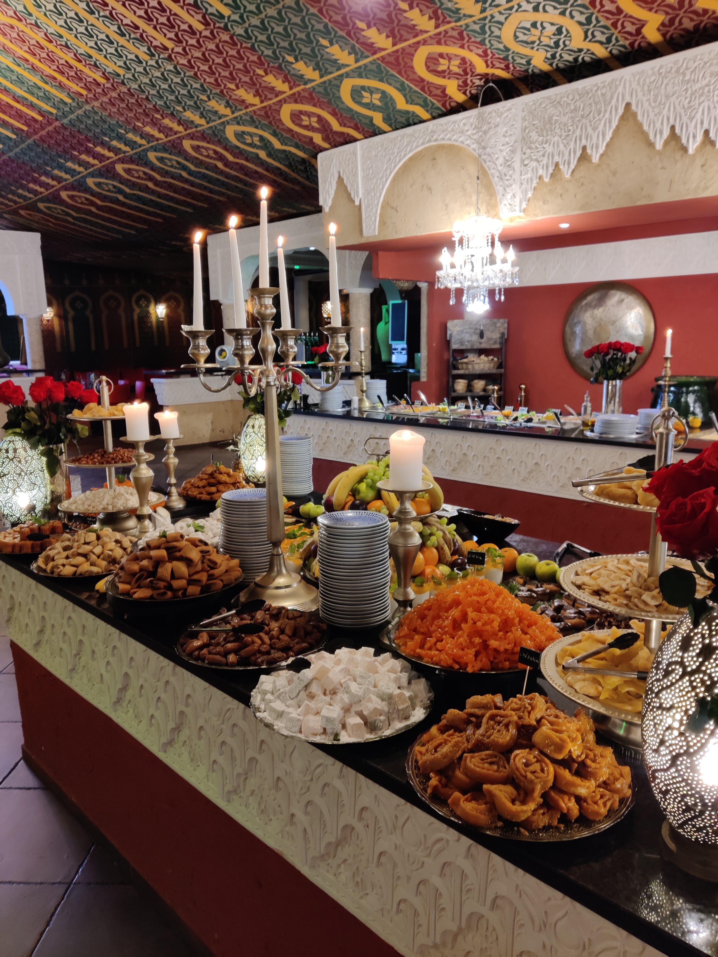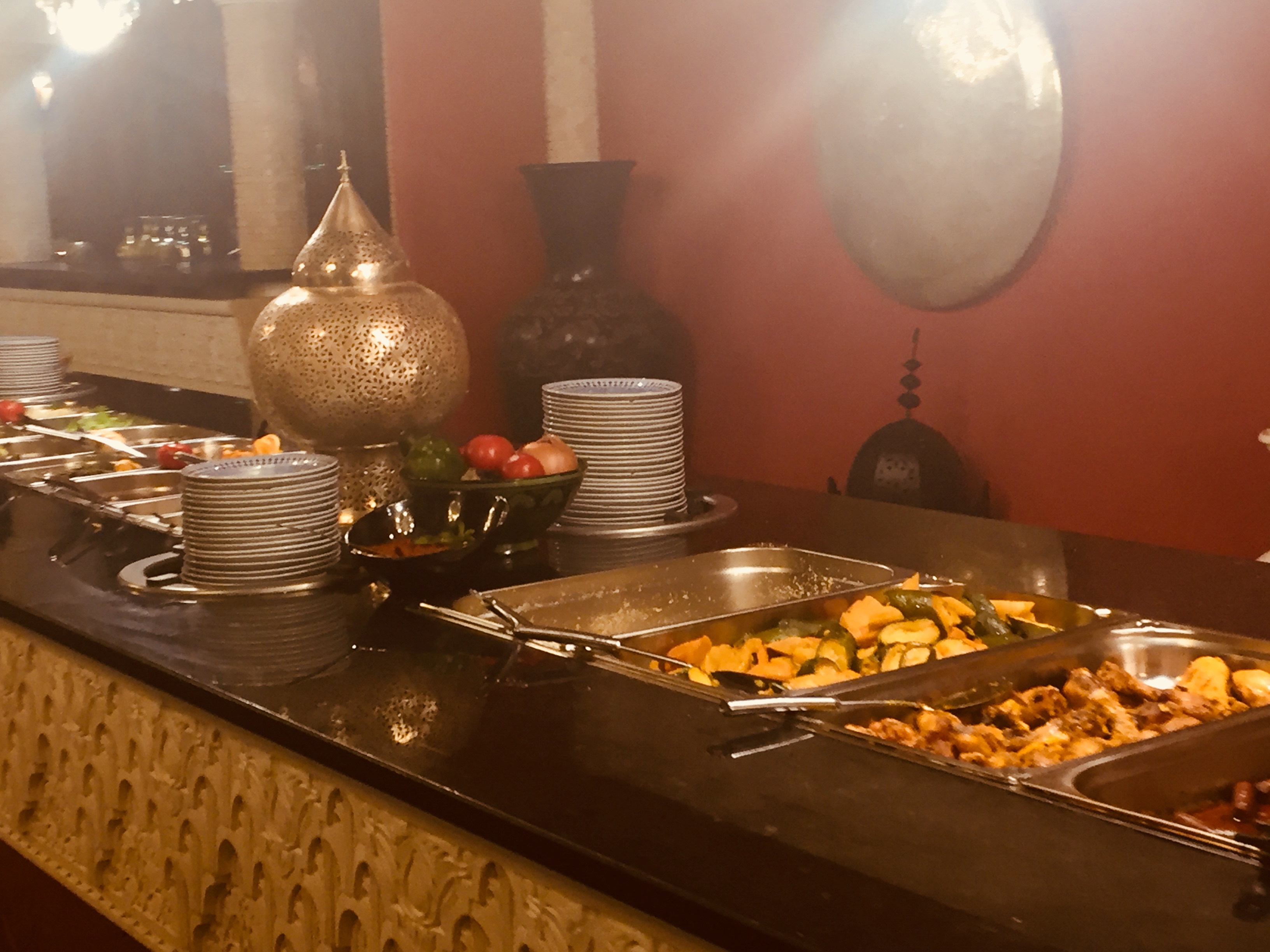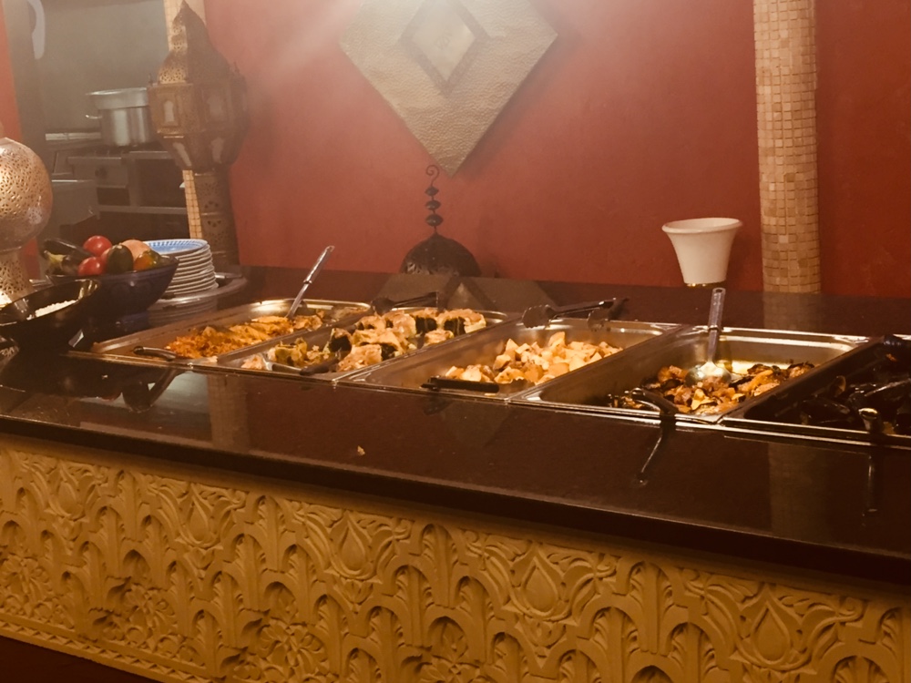 Bon moment passé, les plats proposés sont bon. Il y a une variété de choix cependant il n’y avait qu’un seul choix de viande pour la tajine. Et nous aurions aimons plus de variété dans le choix des desserts.