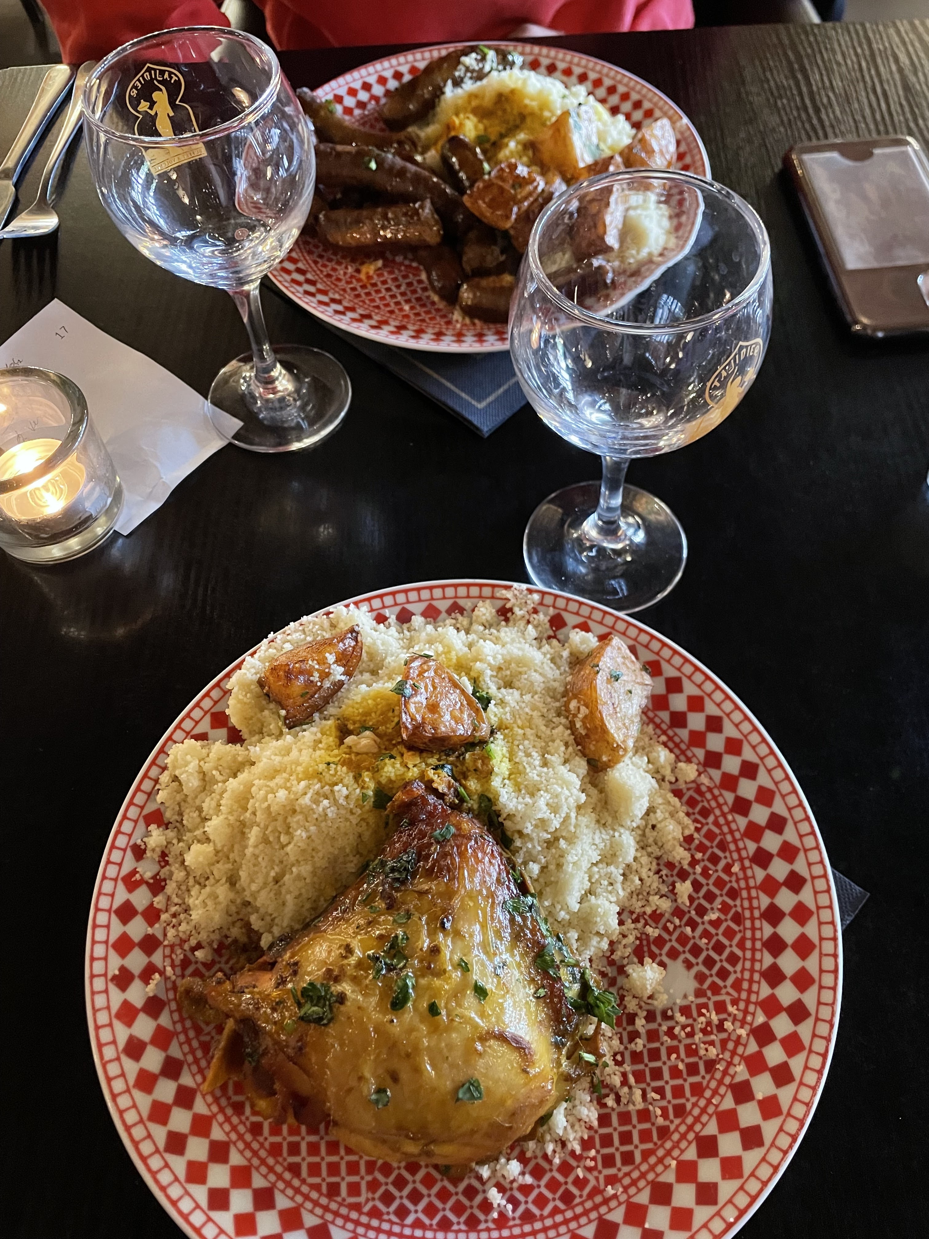 Personnels très agréables. Au petit soin. Les plats sont bons mais le couscous manque de peps. La sauces est un peu fade. Déco sympa.