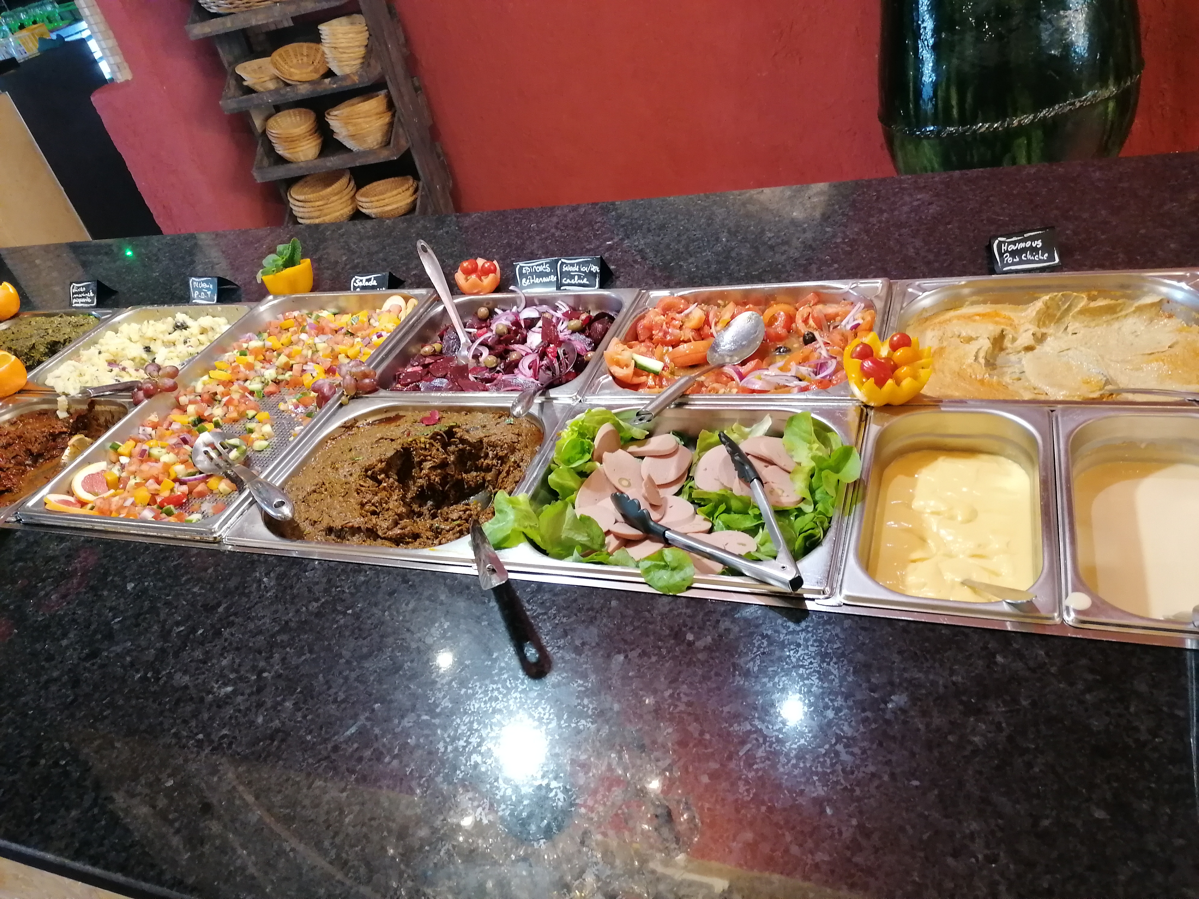 Buffet à volonté diversifié et frais, accueil chaleureux