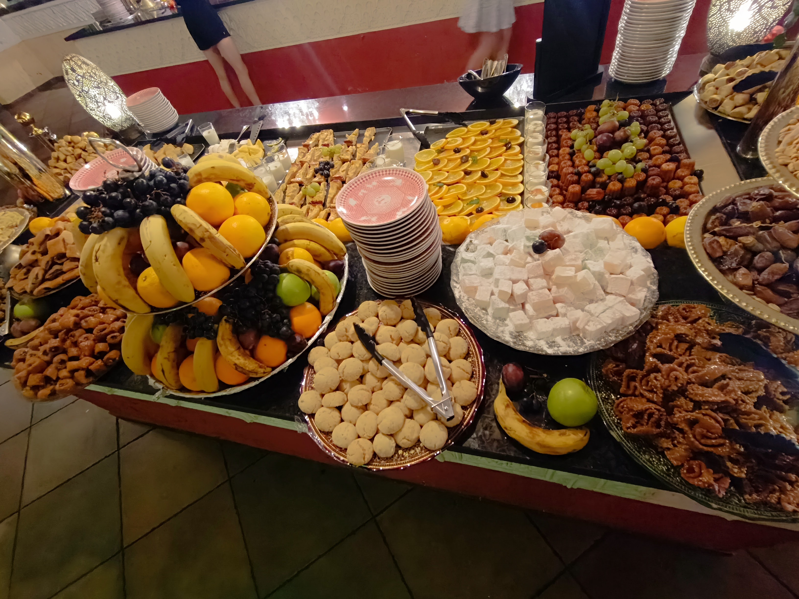 Un buffet à volonté agréable, même si l'on ne trouve pas ce que l'on souhaite comme les cornes de gazelle que nous attendions impatiemment de déguster... Un peu cher néanmoins lorsqu'on rajoute les boissons....