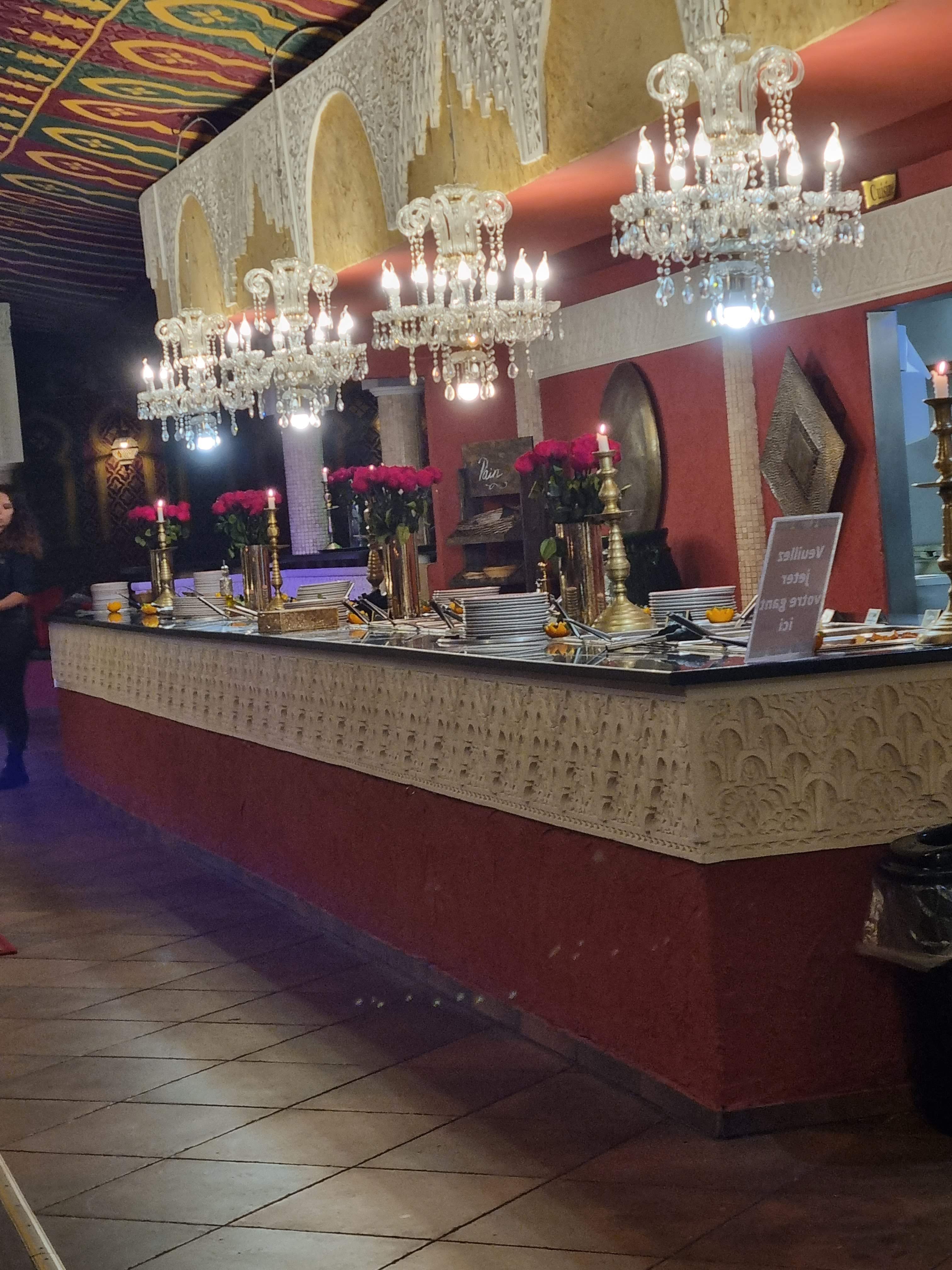 Magnifique décor ! On est reçu comme dans un grand restaurant ce qui est plutôt rare dans les buffets à volonté . Personnel serviable, attentionné et surtout souriant . On se sent « client privilégié » Le prix est tout à fait correct surtout au vu de la qualité des plats servis. Magnifique Danseuse orientale qui vient animer la soirée et faire vivre le décor . Un agréable dépaysement le temps d’un repas .. si vous souhaitez découvrir des saveurs différentes dans une ambiance relaxante, ce restaurant est fait pour vous !