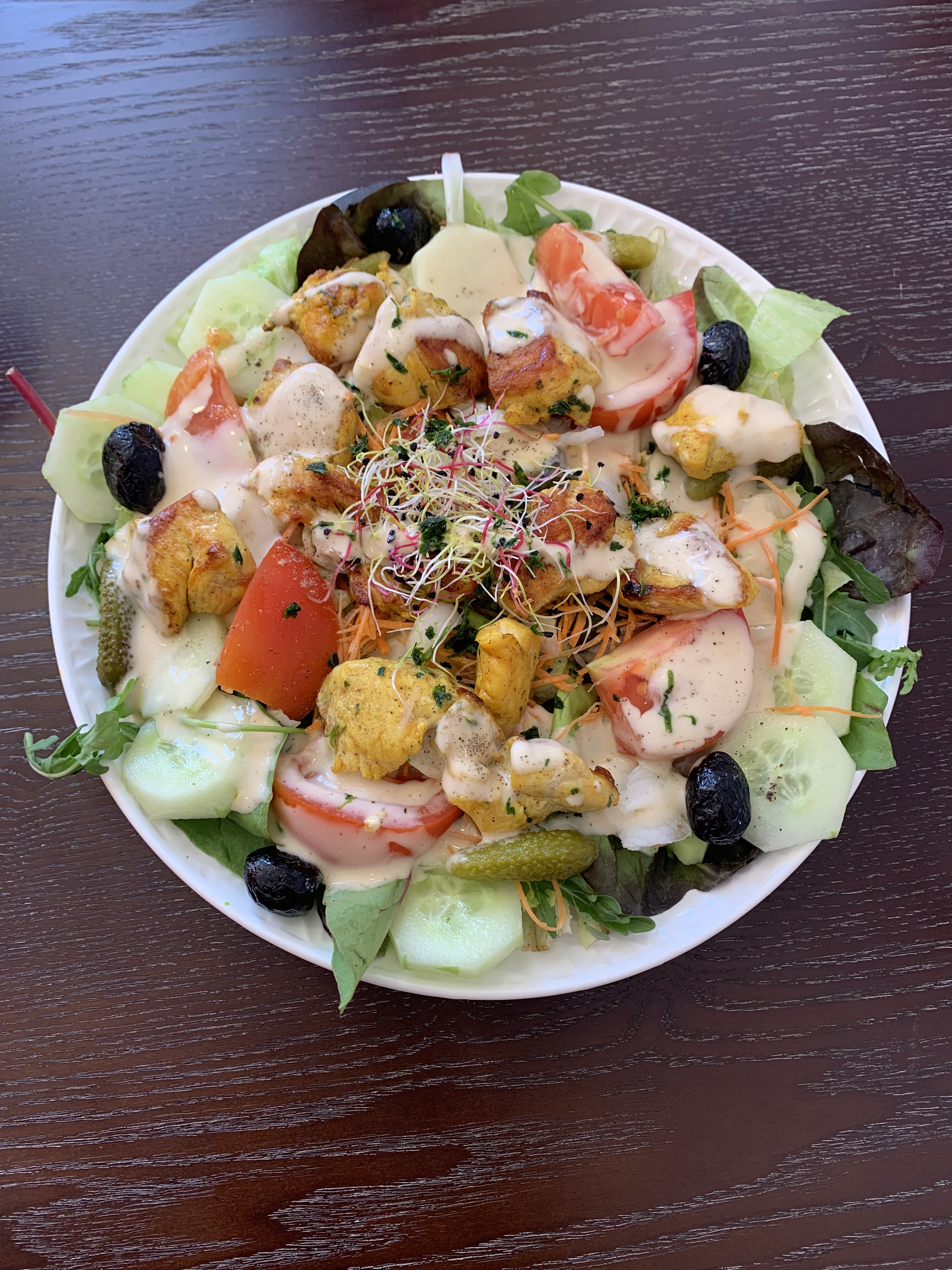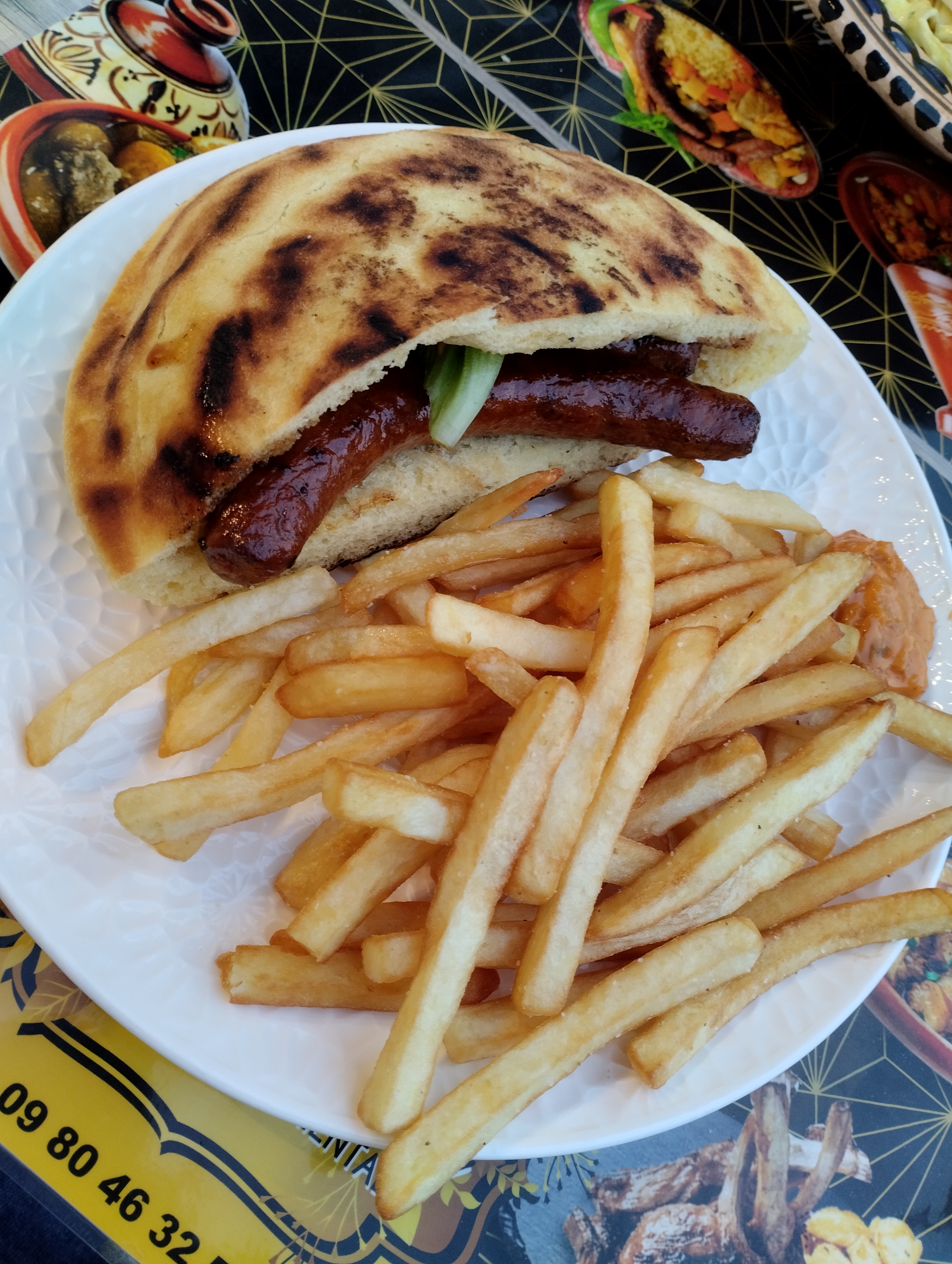 Un repas délicieux avec plein de saveurs, on a pris le caviar d'aubergine en entrée et un sandwich merguez + pâtes au poulet, je recommande le tout.