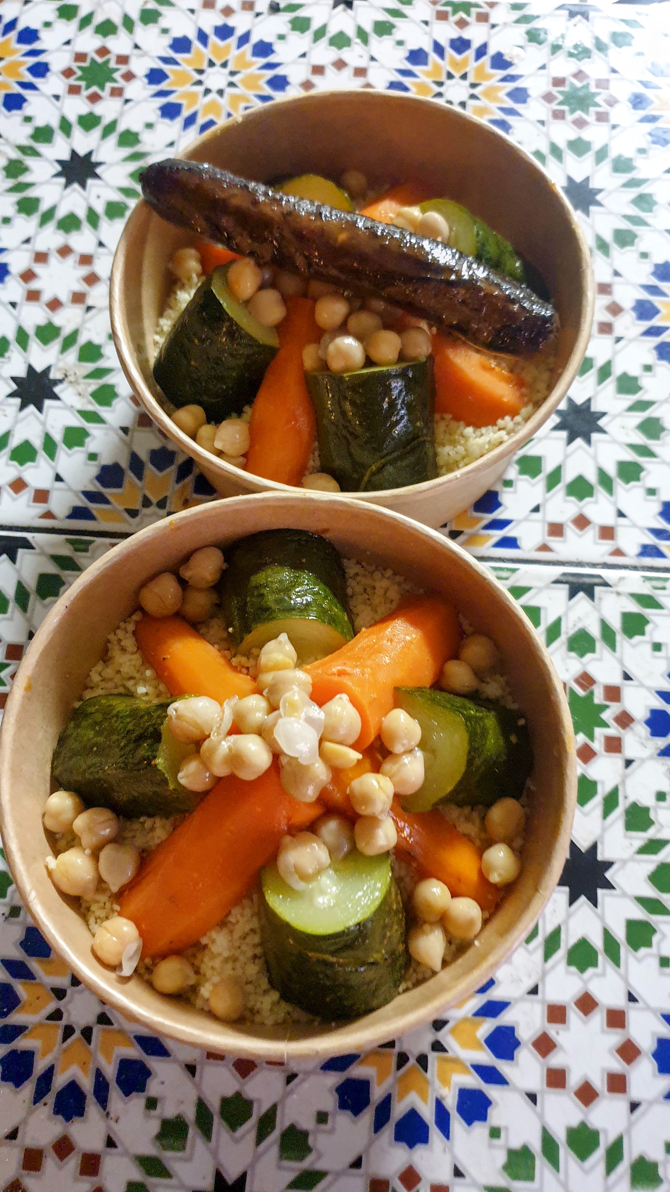Alors , repas catastrophique de A à z ,Semoule trop épaisse , légumes pas de goût , sauce non plus , sauce à la tomate( trop acide ) . Bon, je regrettes de commander chez eux . Pour les avis positifs, franchement, je ne comprends rien du tout , car just pas possible les plats . C est un grand Zéro pour moi